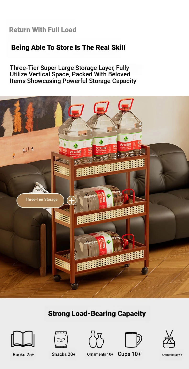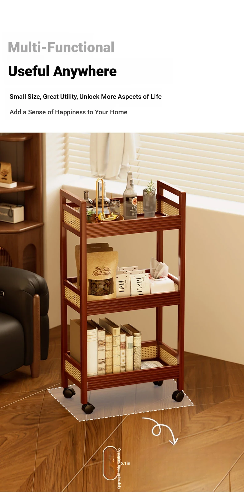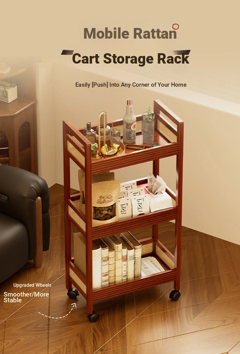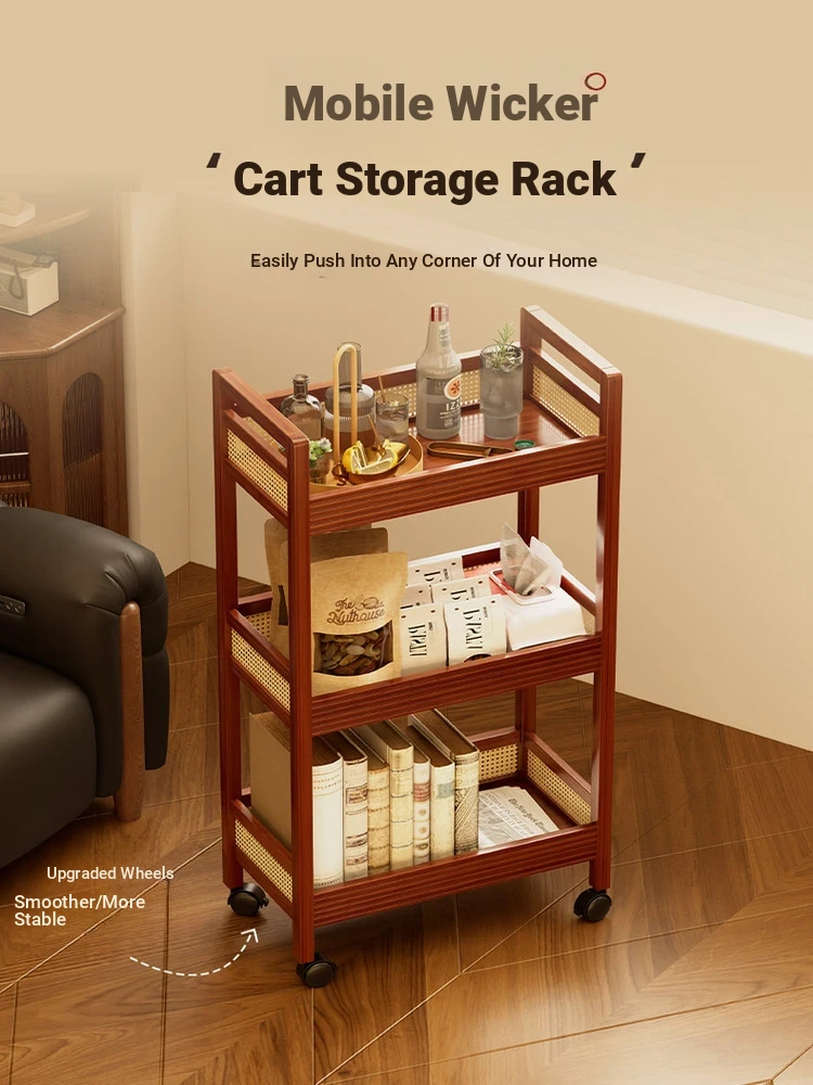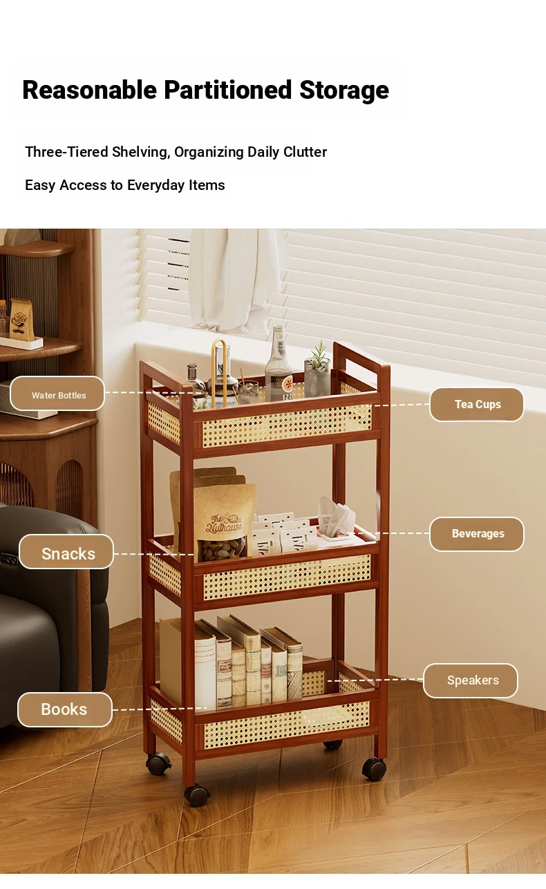 Mobile Snack Cart with Wheels - Versatile Storage Shelf and Side Table, Perfect for Home Bookcases and Organizers, All-in-One Storage Solution