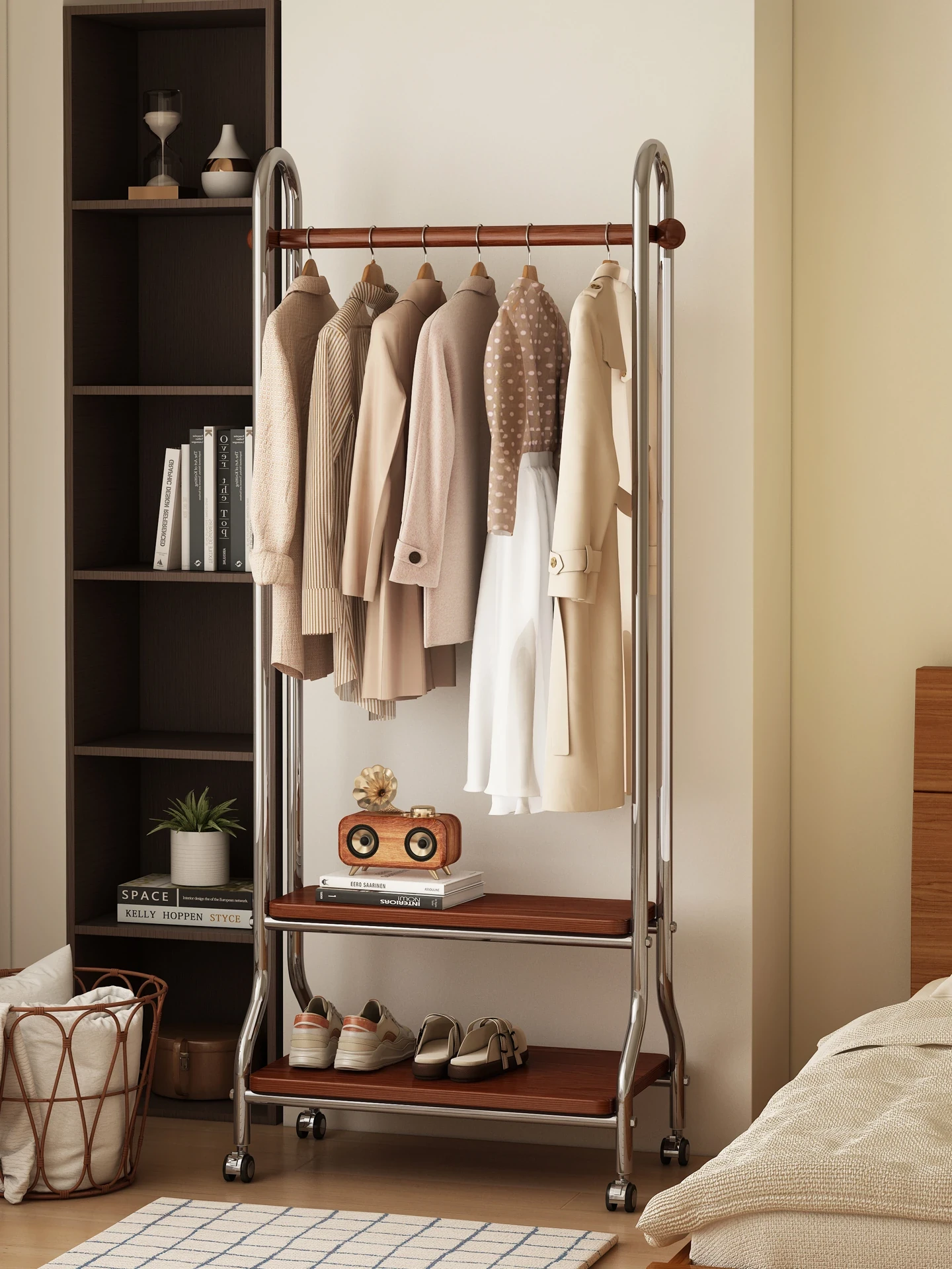 2025 New Stylish Stainless Steel Portable Clothes Rack – Versatile Floor Stand for Bedroom, Ideal for Hanging and Storing Clothes and Accessories, Crafted with Durable Solid Wood. Perfect for Organizing Your Space!