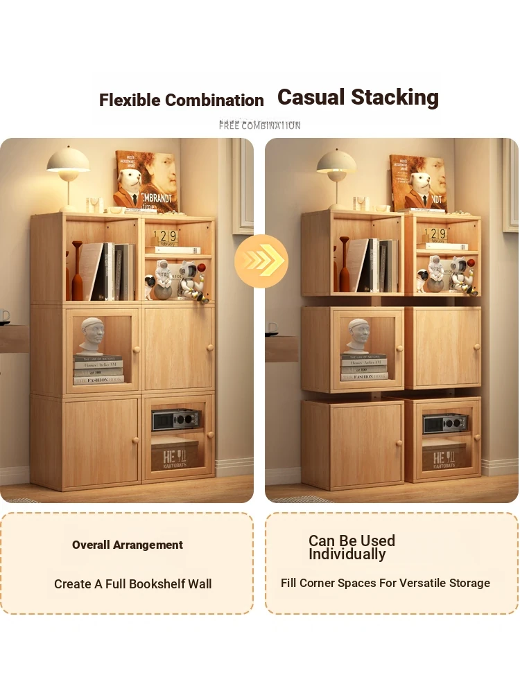 Kaleck Free Combination Grid Shelf - Solid Wood Multi-Layer Desktop Storage Rack, Bookshelf, and Cabinet - Space-Saving Wall-Mounted Design for Stylish Organization