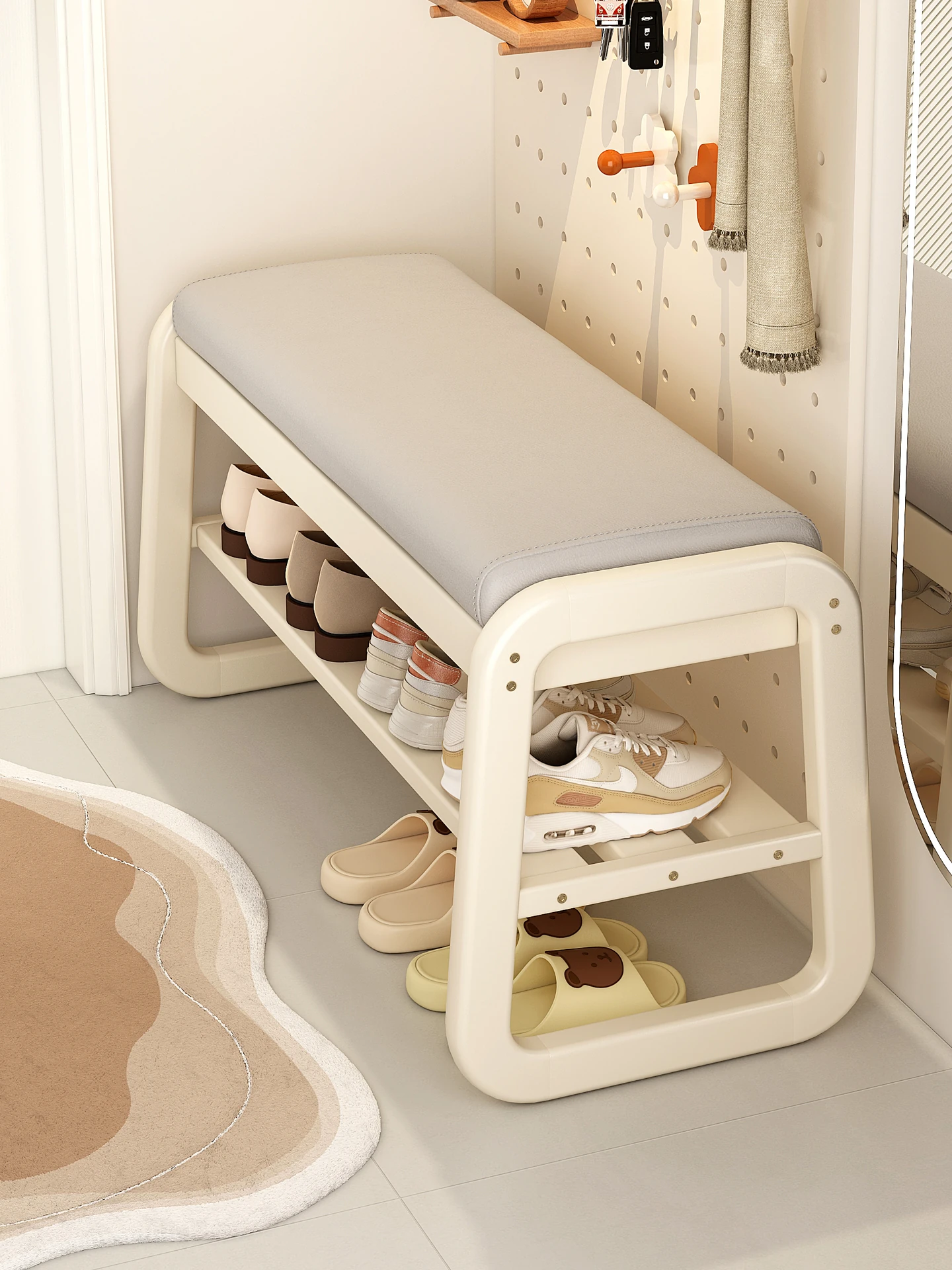 Solid Wood Shoe Bench - Entryway Storage Seat with Creamy Style, Perfect for Home Use - Multi-functional Long Bench for Easy Shoe Changing and Organization