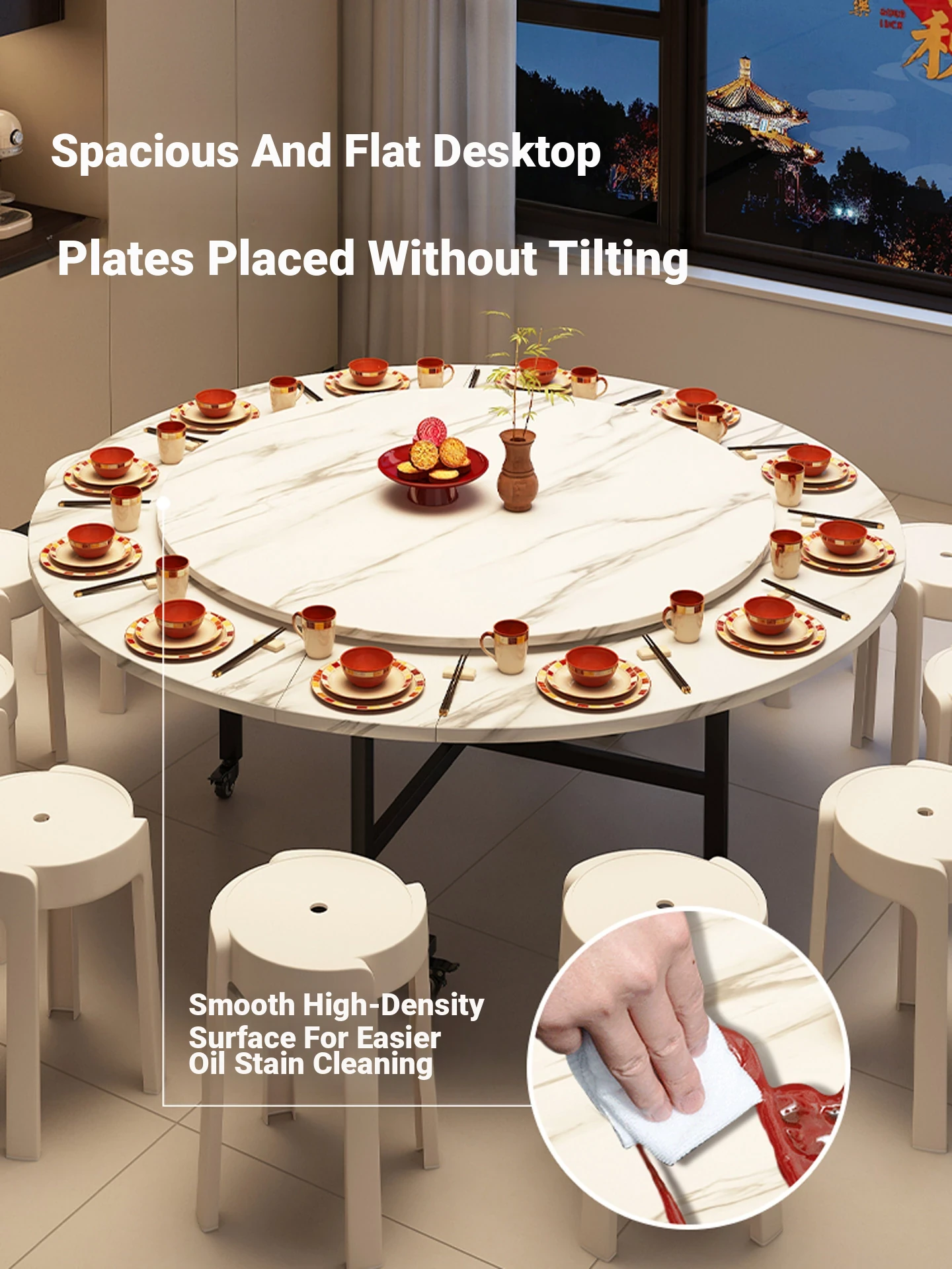 Compact Folding Round Dining Table for Small Spaces - Seats 10-15 People with Lazy Susan - 2025 New Design