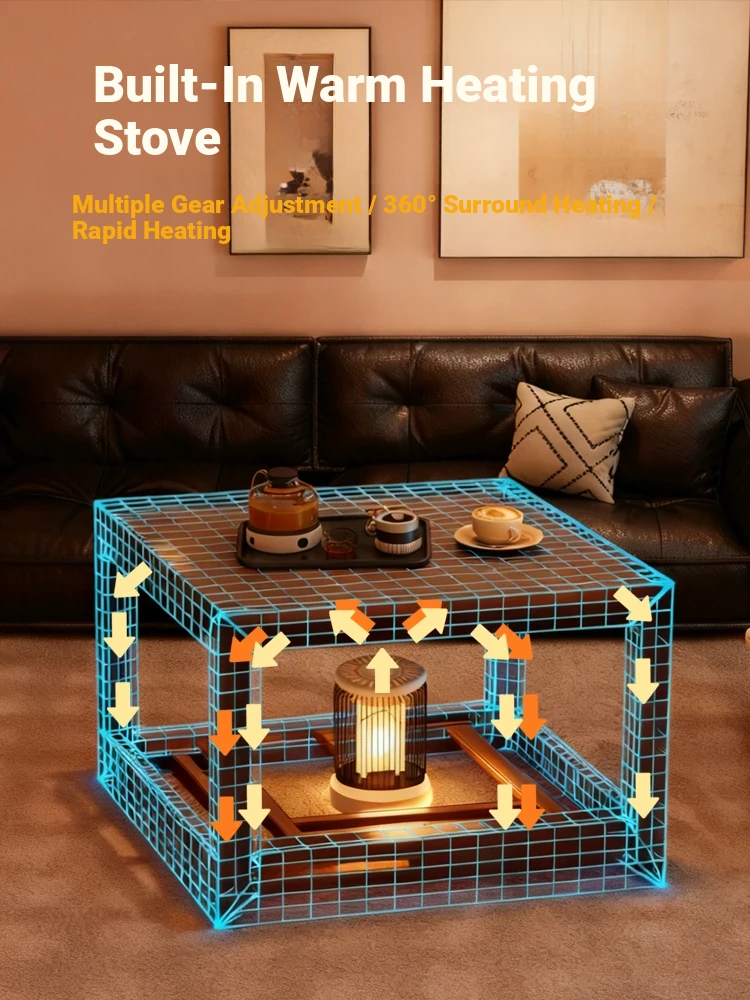 2025 New Folding Wooden Heating Table for Home - Rectangular Design, Perfect for Winter Study and Cozy Gatherings - Ideal as a Warmth Table or Coffee Table