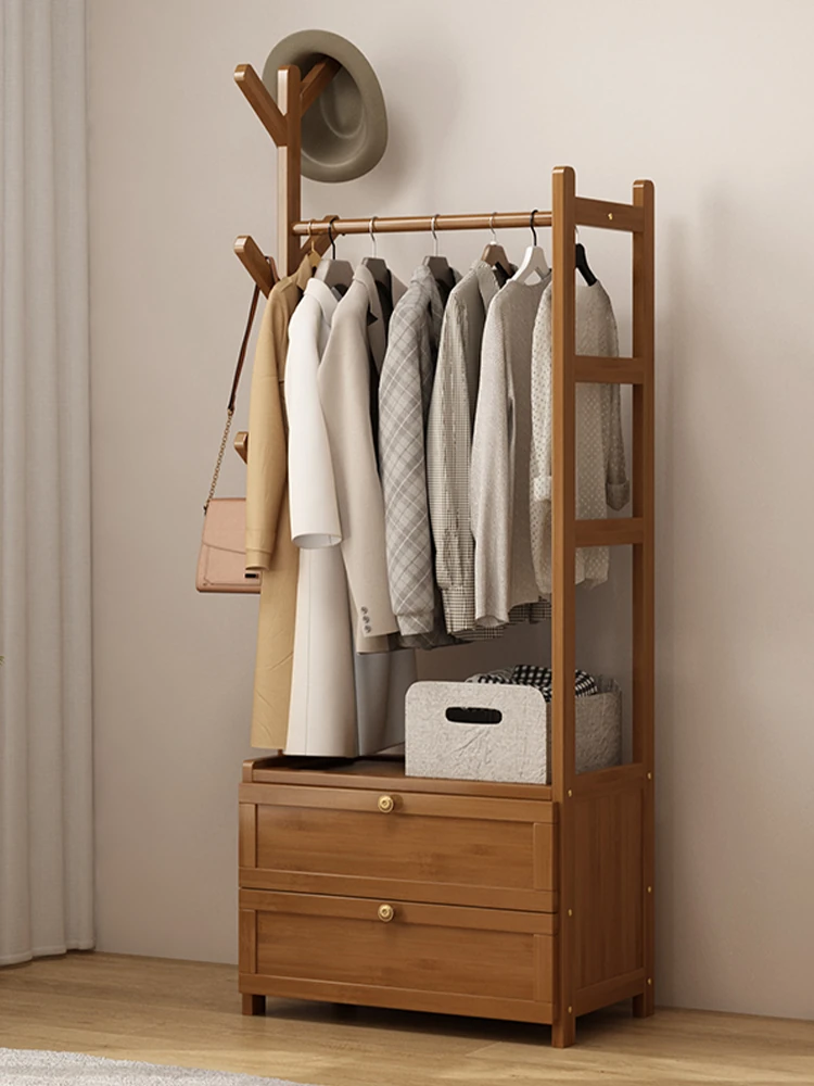 Stylish Floor Coat Rack for Bedroom - Multi-Functional Storage Cabinet and Clothes Hanger, Perfect for Indoor Use and Bedside Organization