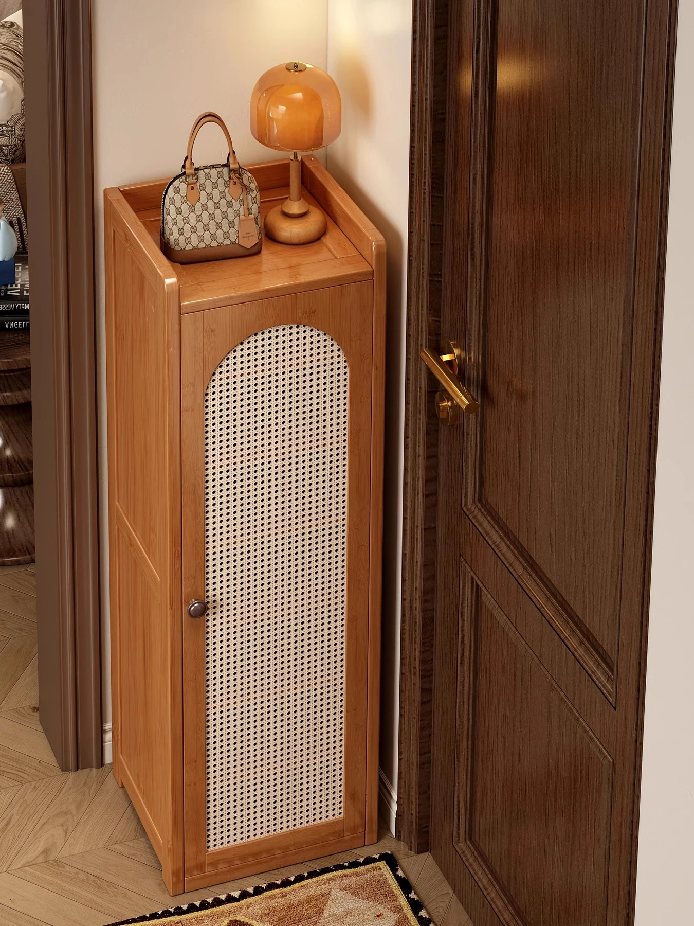 2025 New Multi-Layer Woven Narrow Shoe Rack - Stylish and Dustproof Entryway Shoe Cabinet with Door for Home Storage Solutions