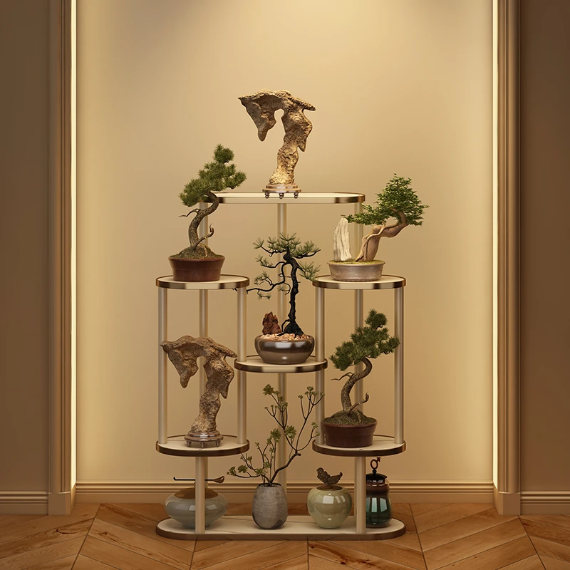 Chinese Style Song Dynasty Aesthetic Flower Stand - Elegant Floor Plant Display Rack for Balcony, Living Room, and Outdoor Courtyard - Perfect for Showcasing Your Greenery with Timeless Charm