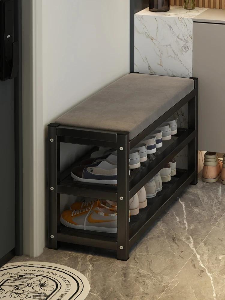 Premium Narrow Shoe Cabinet with Bench for Entrance - Stylish Space-Saving Design for Small Homes - Stainless Steel Shoe Rack and Seat Combo