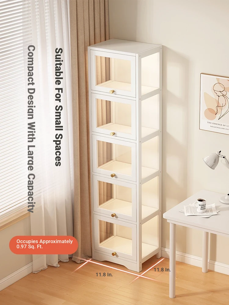 Narrow Corner Bookshelf with Acrylic Doors - Stylish Wall-Mounted Storage Cabinet for Living Room, Space-Saving Bookcase and Storage Solution