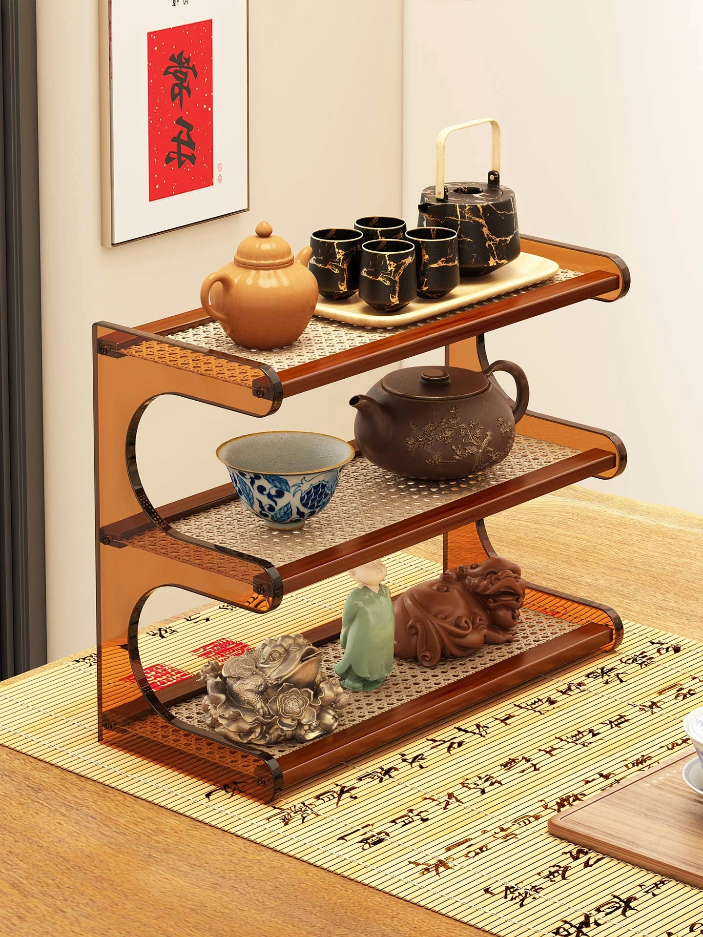 Desktop Tea Cup Storage Rack - Compact Display Stand for Tea Room, Tea Table & Teapot - Perfect for Organizing Yixing Teapots and Tea Sets!