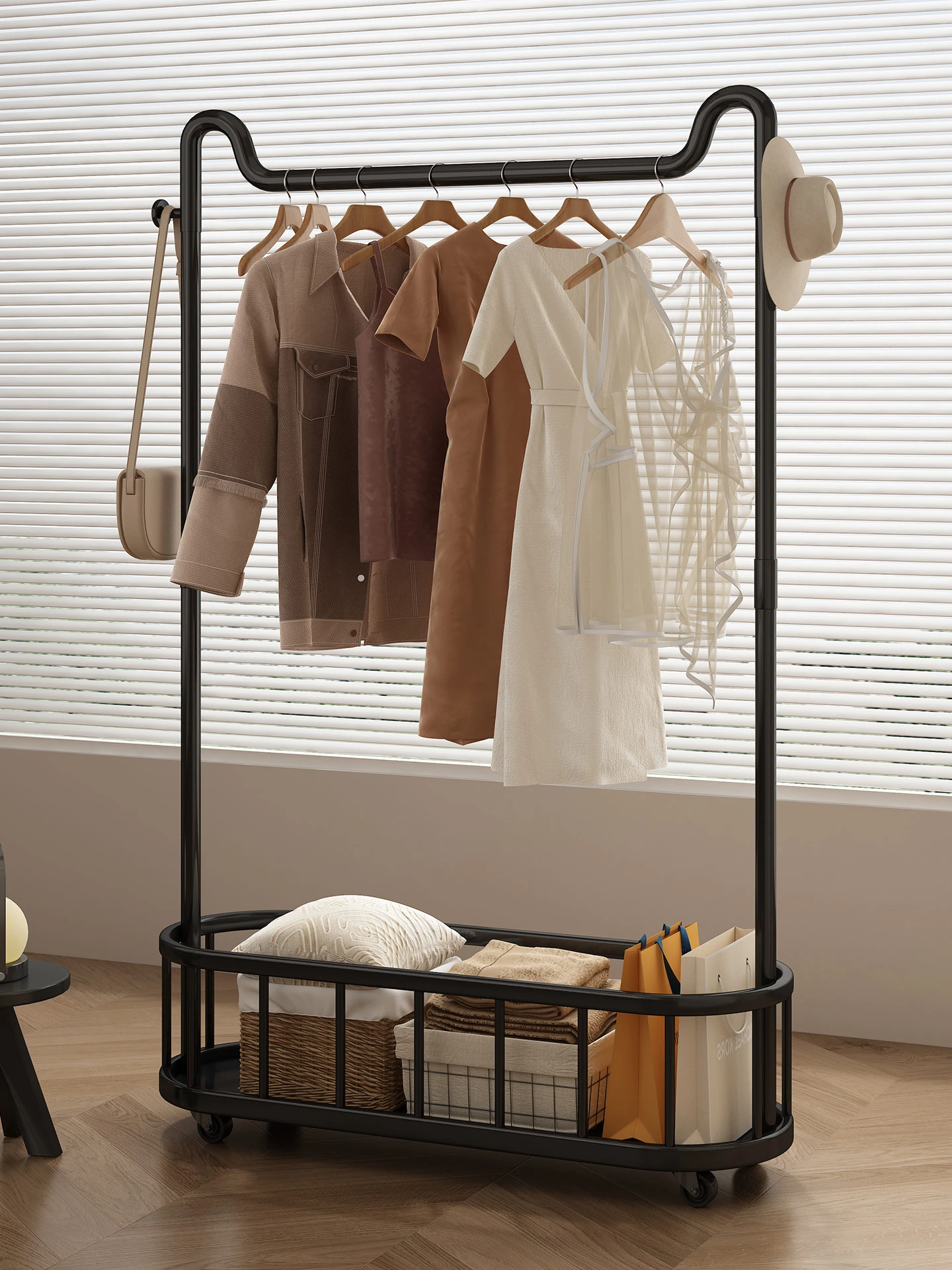 Creamy Minimalist Freestanding Iron Coat Rack - Stylish and Portable Indoor Clothes Hanger for Bedroom and Living Room, Perfect for Easy Organization and Chic Décor