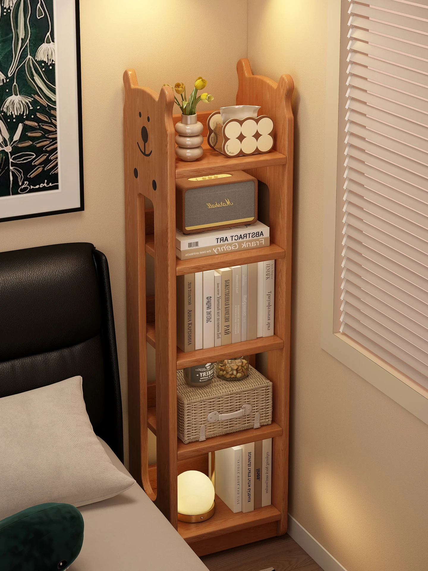 Compact Children's Book Rack - Stylish Wooden Corner Shelf for Easy Access to Storybooks - Space-Saving Floor Stand Storage Cabinet with Integrated Design