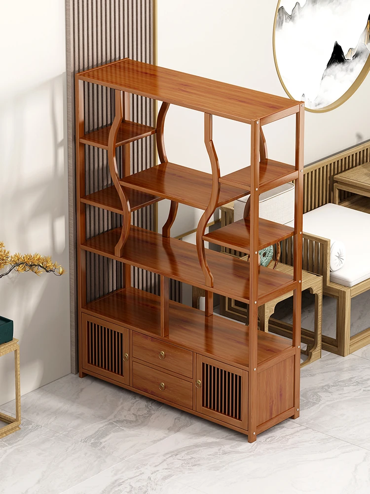 New Chinese Style Bamboo Entryway Display Shelf - Stylish Freestanding Partition Cabinet for Hallway, Perfect for Organizing and Showcasing Your Treasures