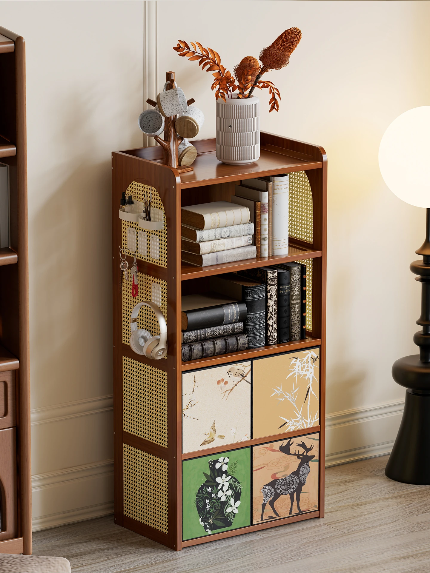 Vintage Style Floor Bookshelf - Simple Home Storage Rack with Baskets, Ideal for Living Room Organization and Wall-Mounted Convenience. Perfect for Books and Décor!