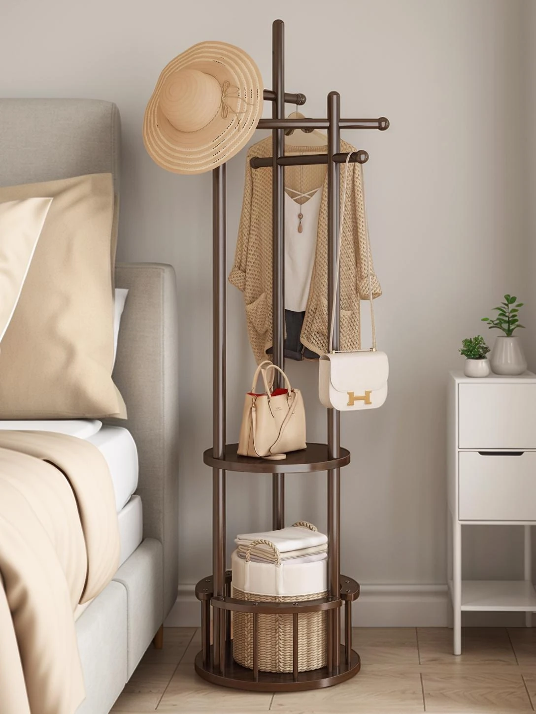 2025 New Stylish Floor-Standing Garment Rack - Versatile Bedroom Clothes Hanger & Hat Stand, Perfect for Bed End Storage and Organizing Your Space!