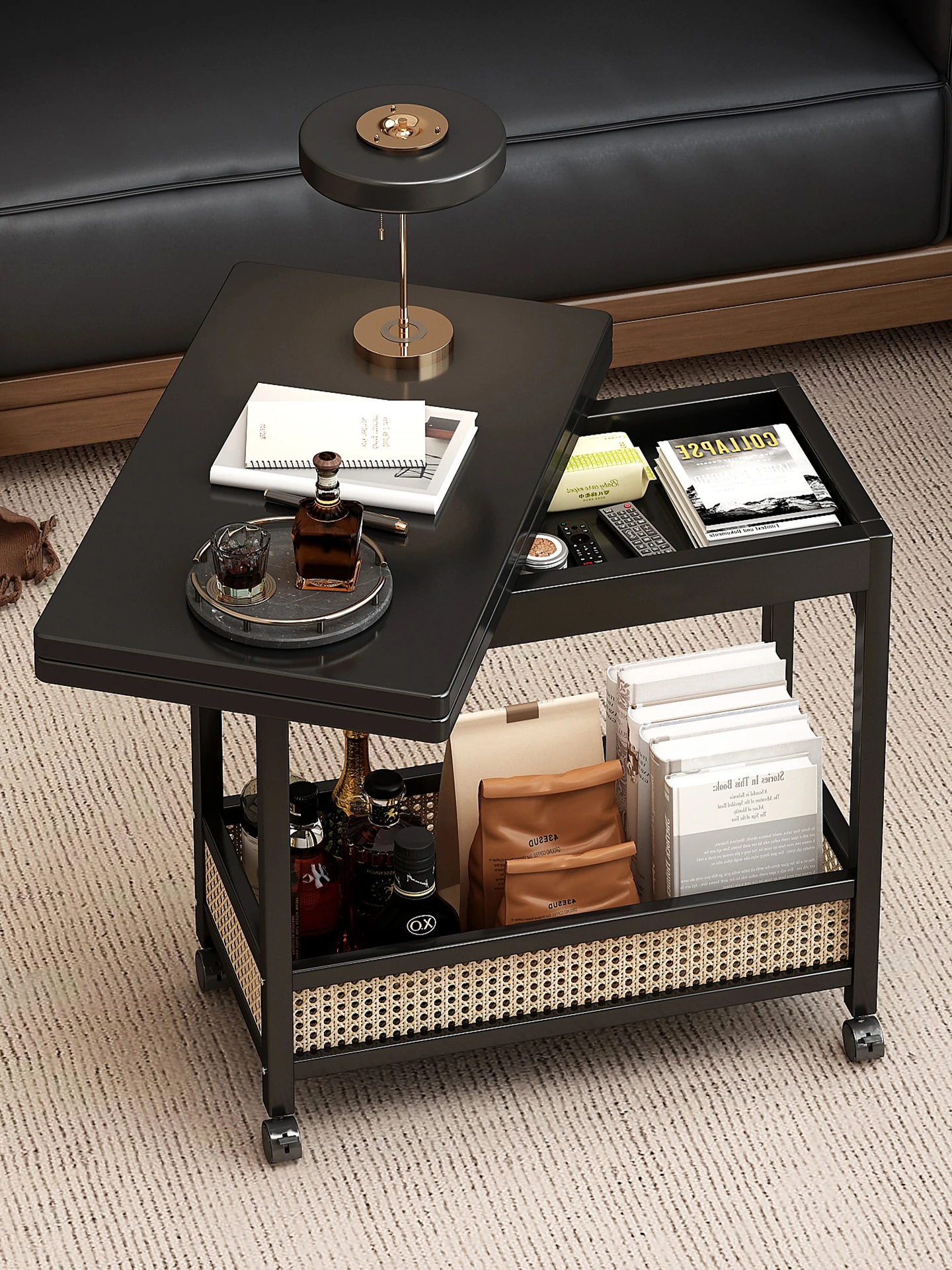 Foldable Mobile Side Table - Versatile Wooden Nightstand and Sofa End Table, Perfect for Living Room or Bedroom, Ideal for Storage and Display, Stylish and Practical Small Cart