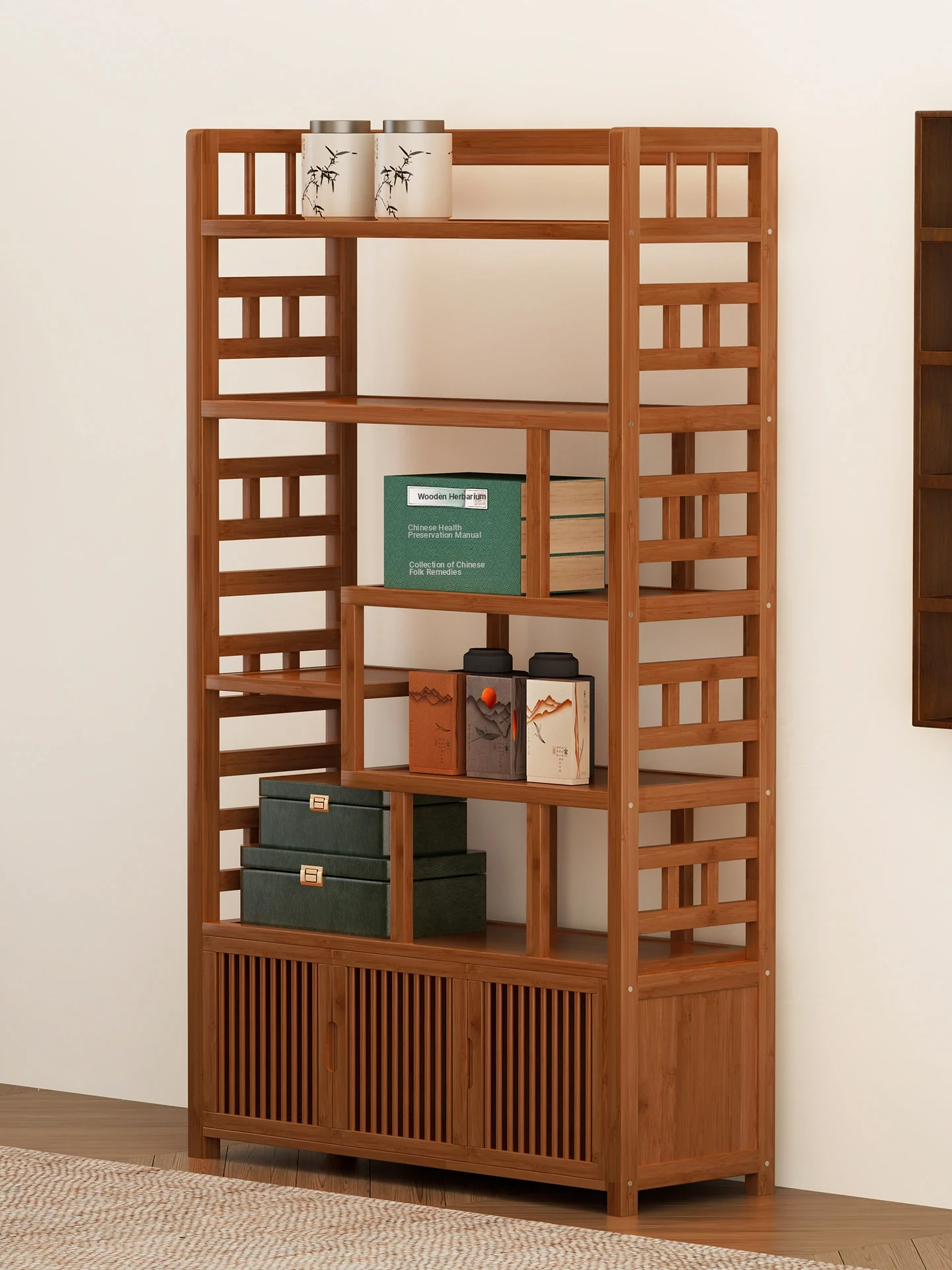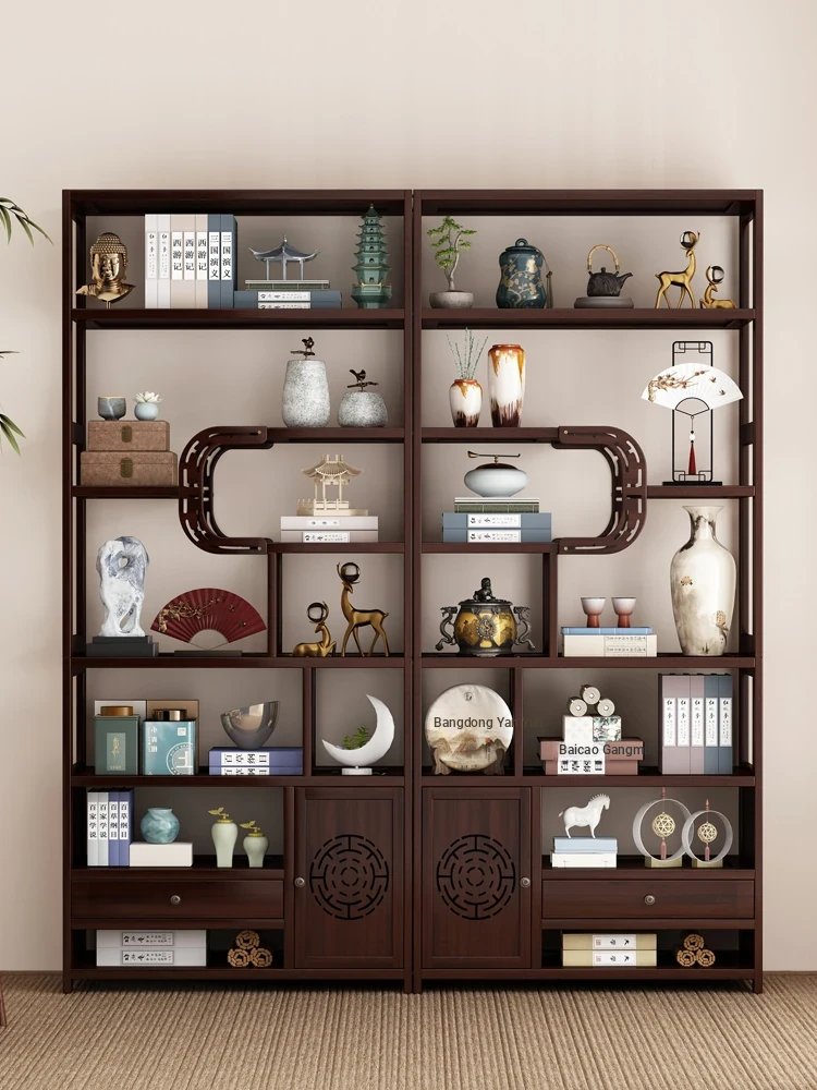 Chinese Antique Style Tea Display Cabinet - New Multi-functional Tea Room Storage Rack, Vintage Bookshelf for Office and Home Decor