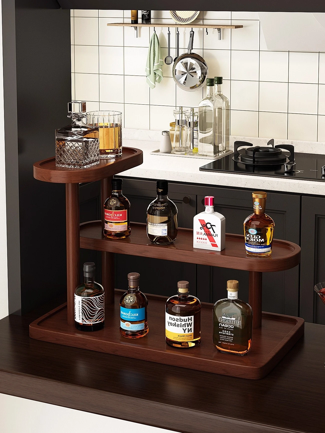 Compact Desktop Wine Rack - Multi-Layer Mini Bar Shelf for Home Use, Stylish Liquor Display Stand & Glass Holder Perfect for Showcasing Your Favorite Spirits