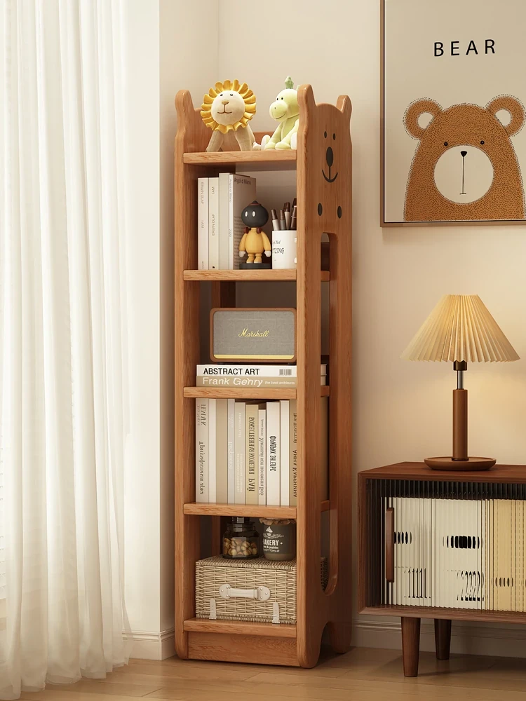 Solid Wood Bookshelf - Slim Floor Storage Unit for Wall-Mounted Use - Ideal for Students and Home Living Rooms - Stylish and Functional Organizer