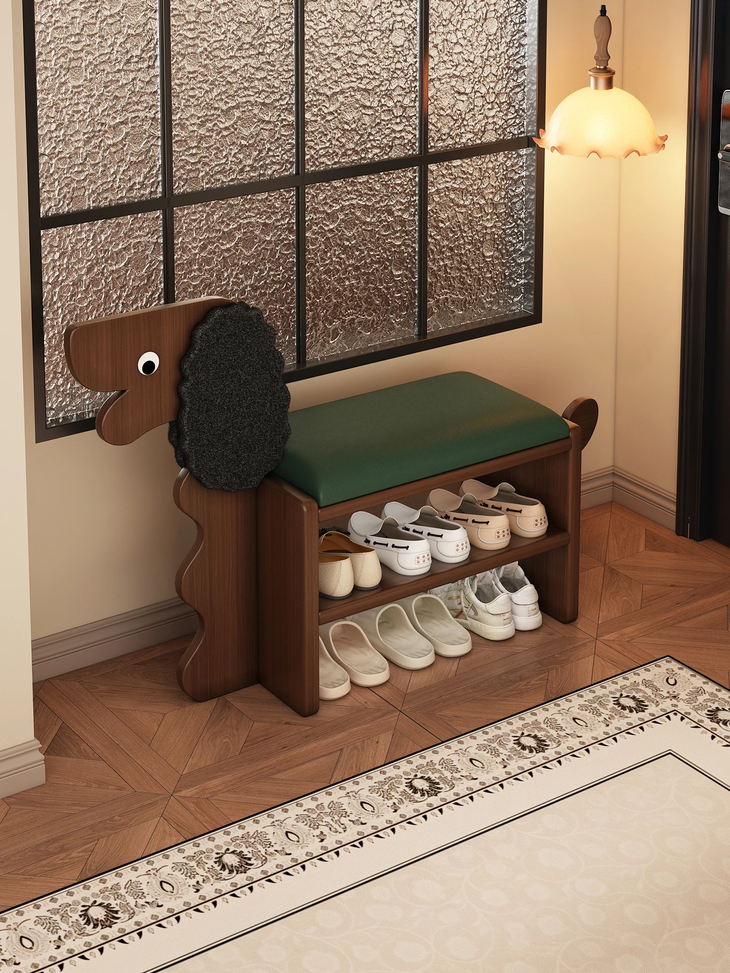Cute Solid Wood Dog Shoe Changing Stool - Creative Entryway Bench for Home, Functional Shoe Cabinet and Seating in One, Perfect for Your Entrance!