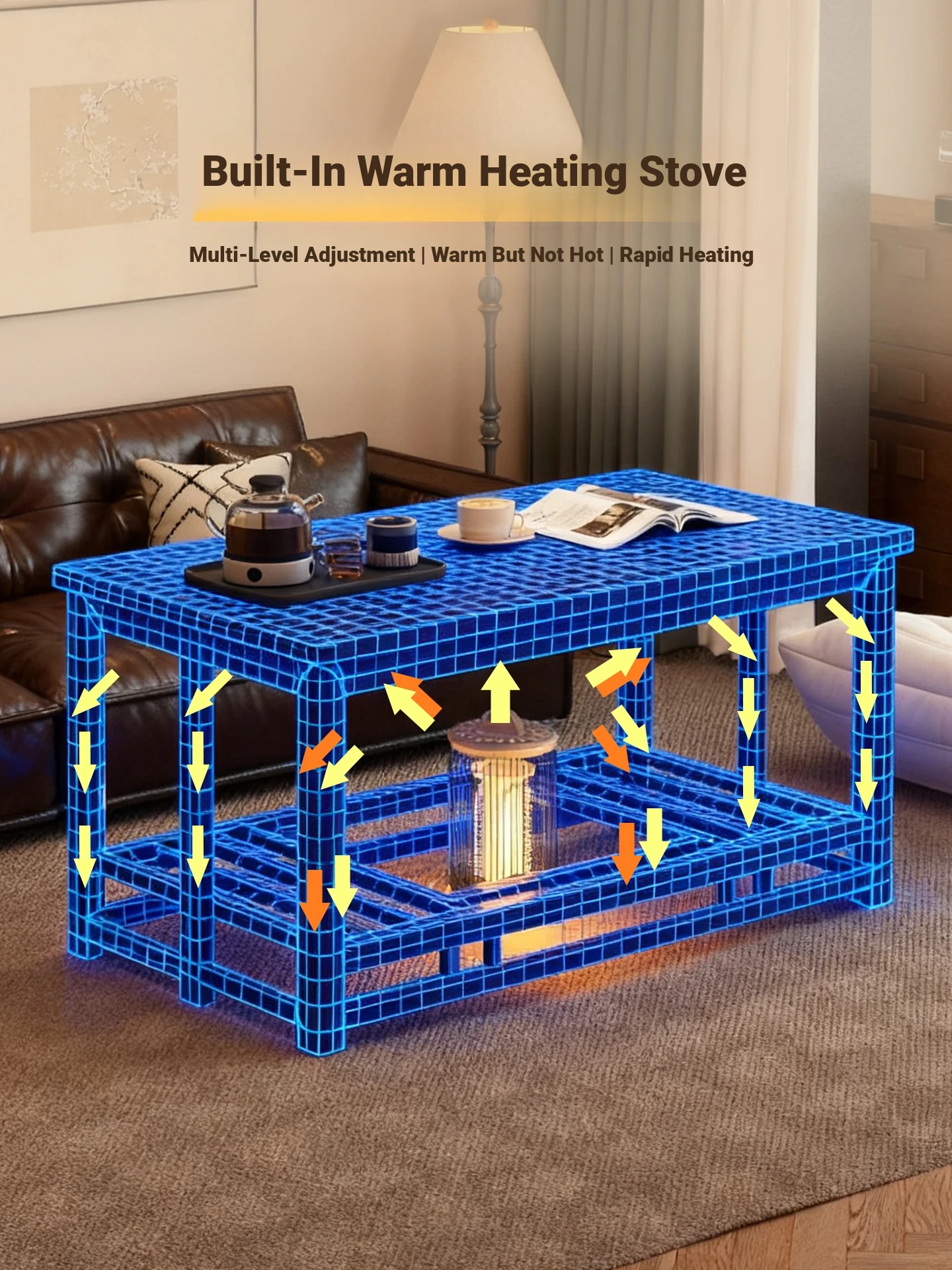 Foldable Rectangular Fire Pit Table for Home - Solid Wood Winter Heating Table for Playing Cards, Dou Dizhu, Coffee, and Dining