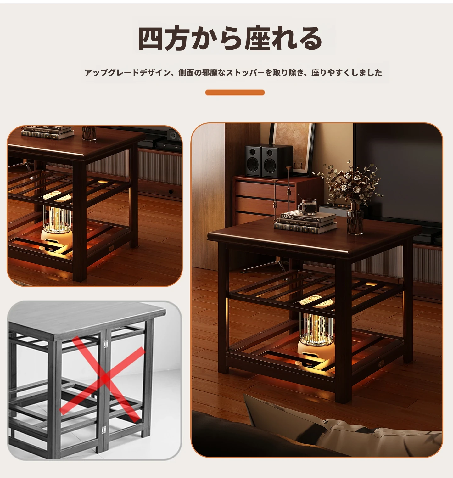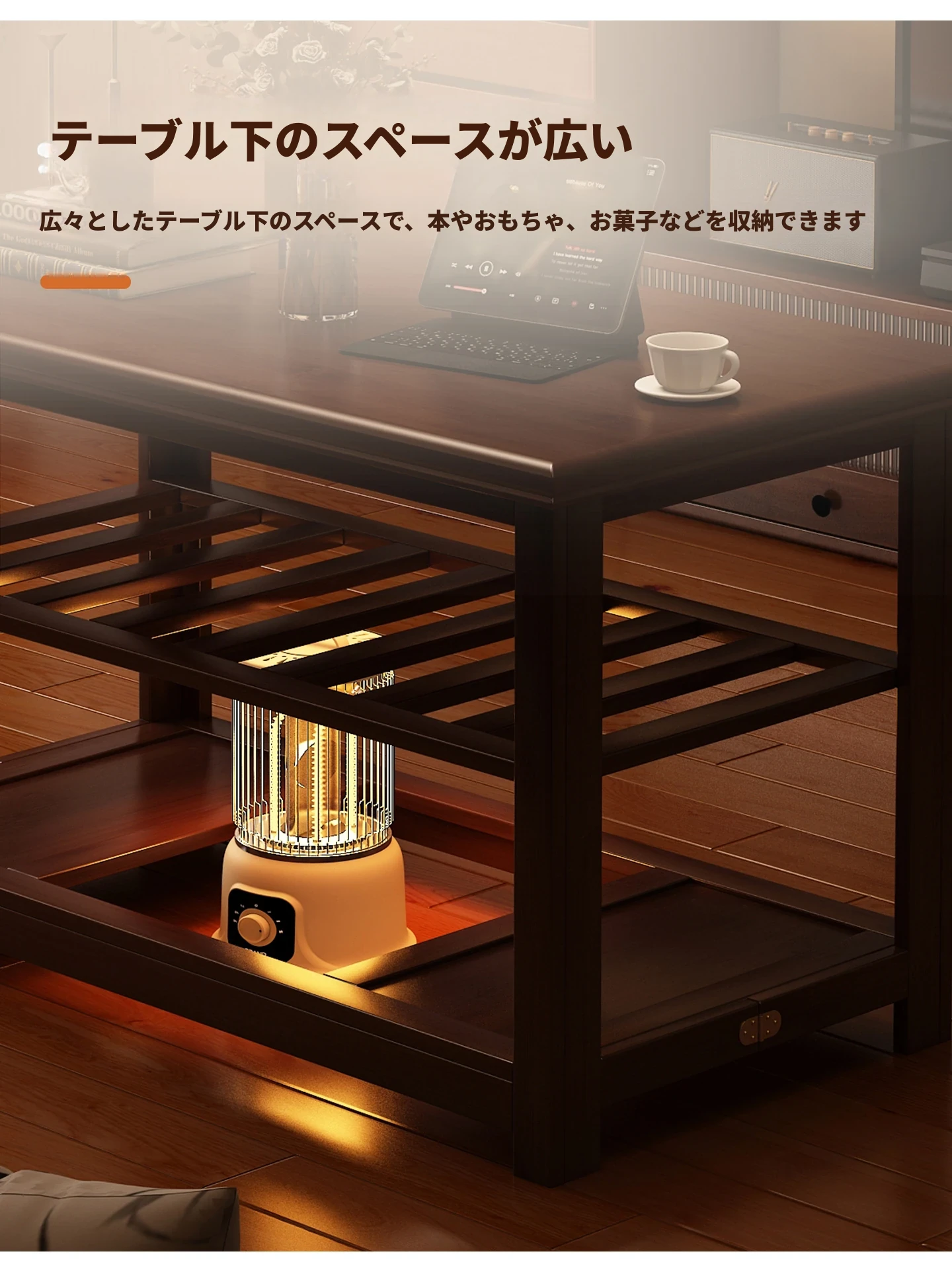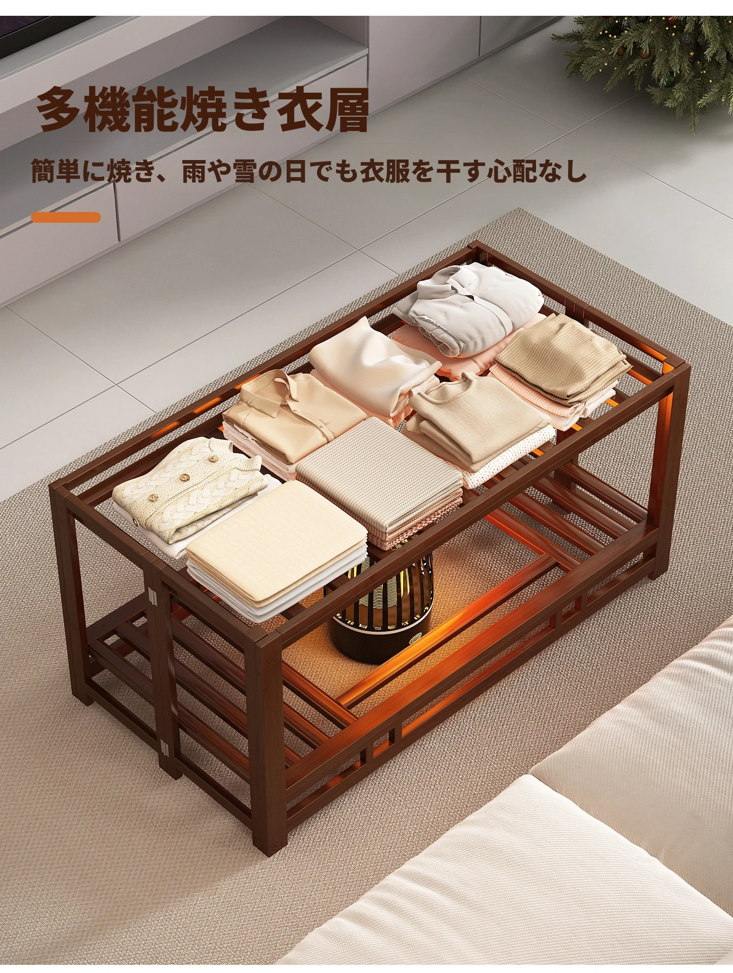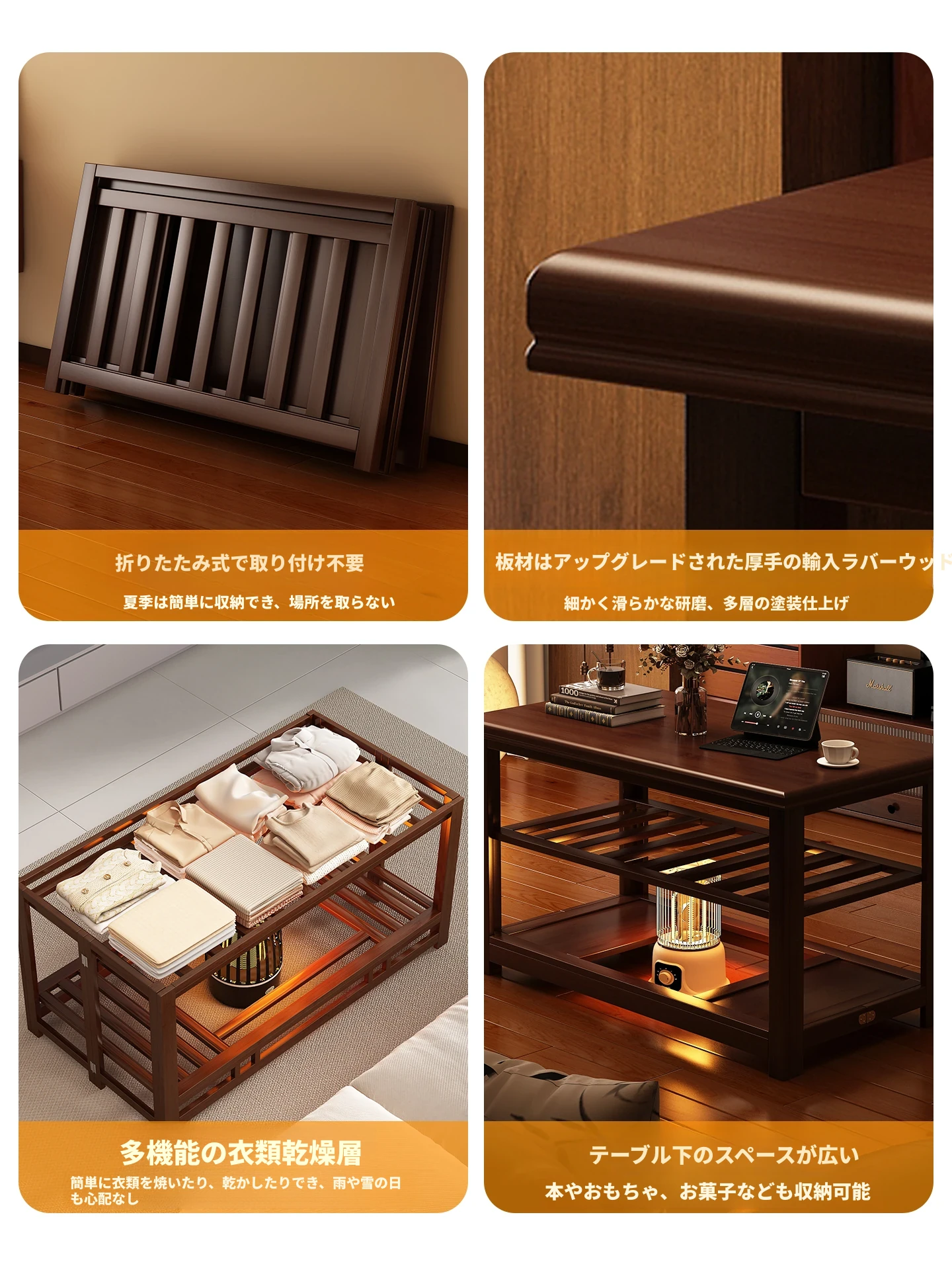 折りたたみ式暖房テーブル|実木製の長方形デザイン|冬の宿題やリラックスタイムに最適|2025年新作の暖かいティーテーブル