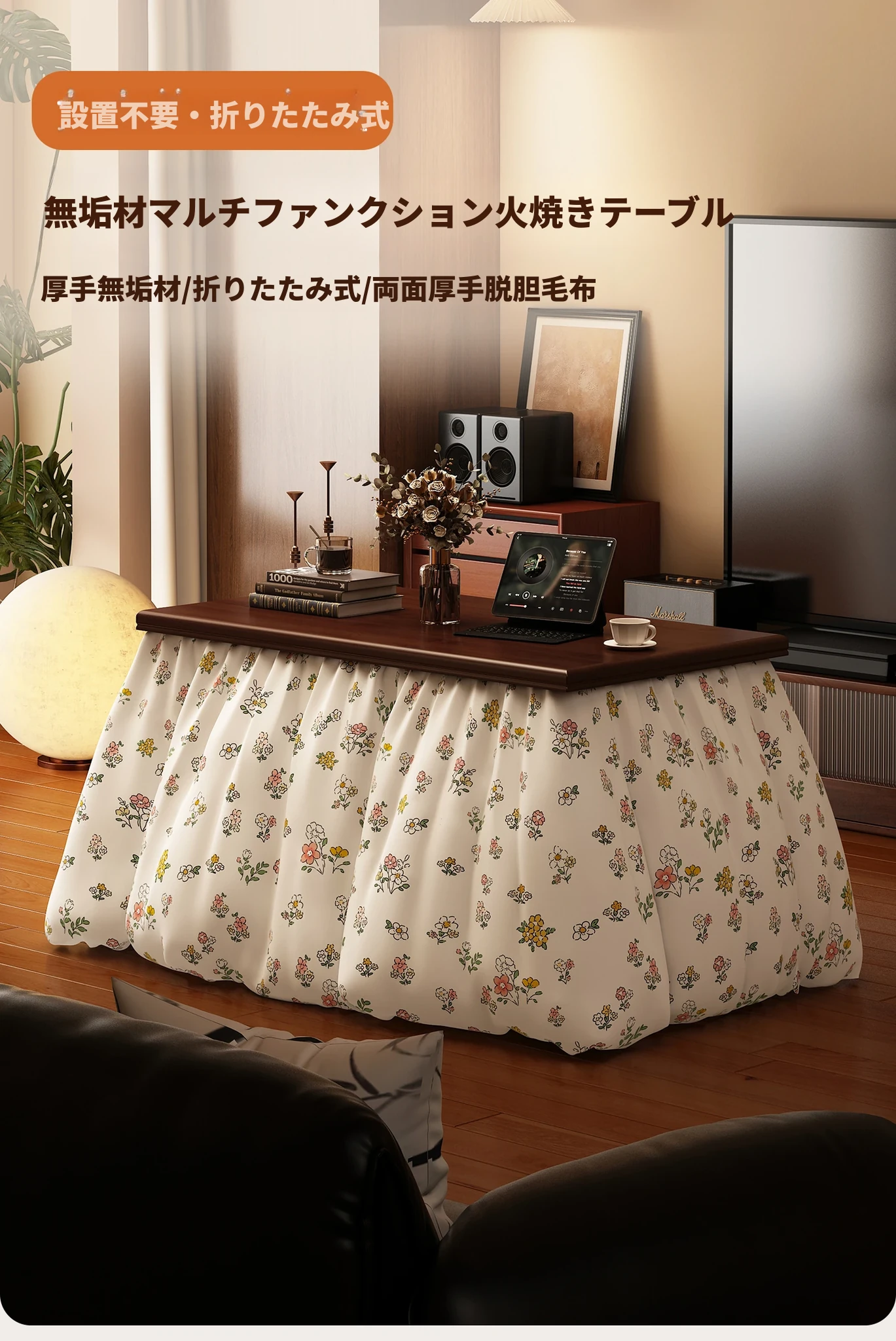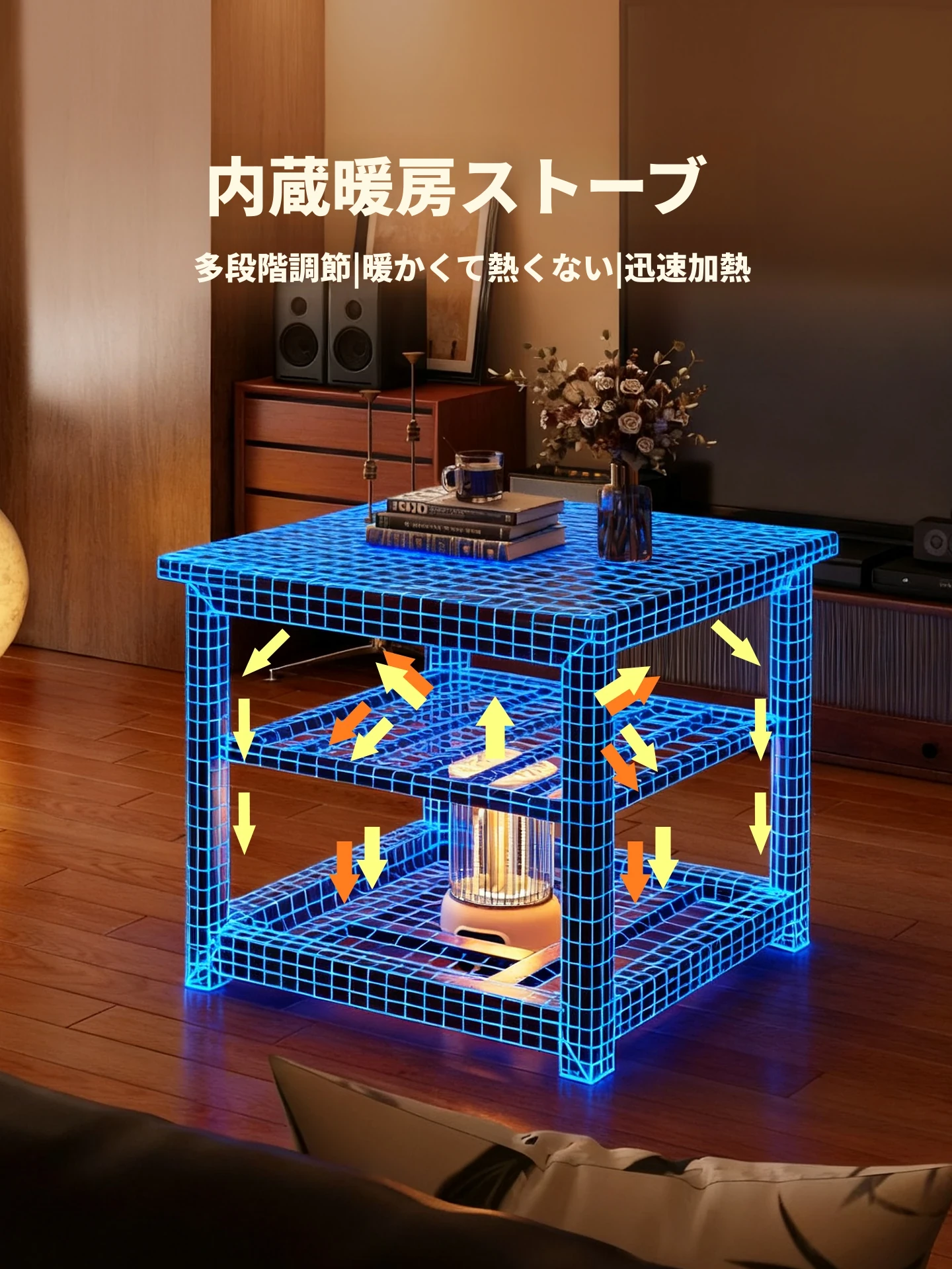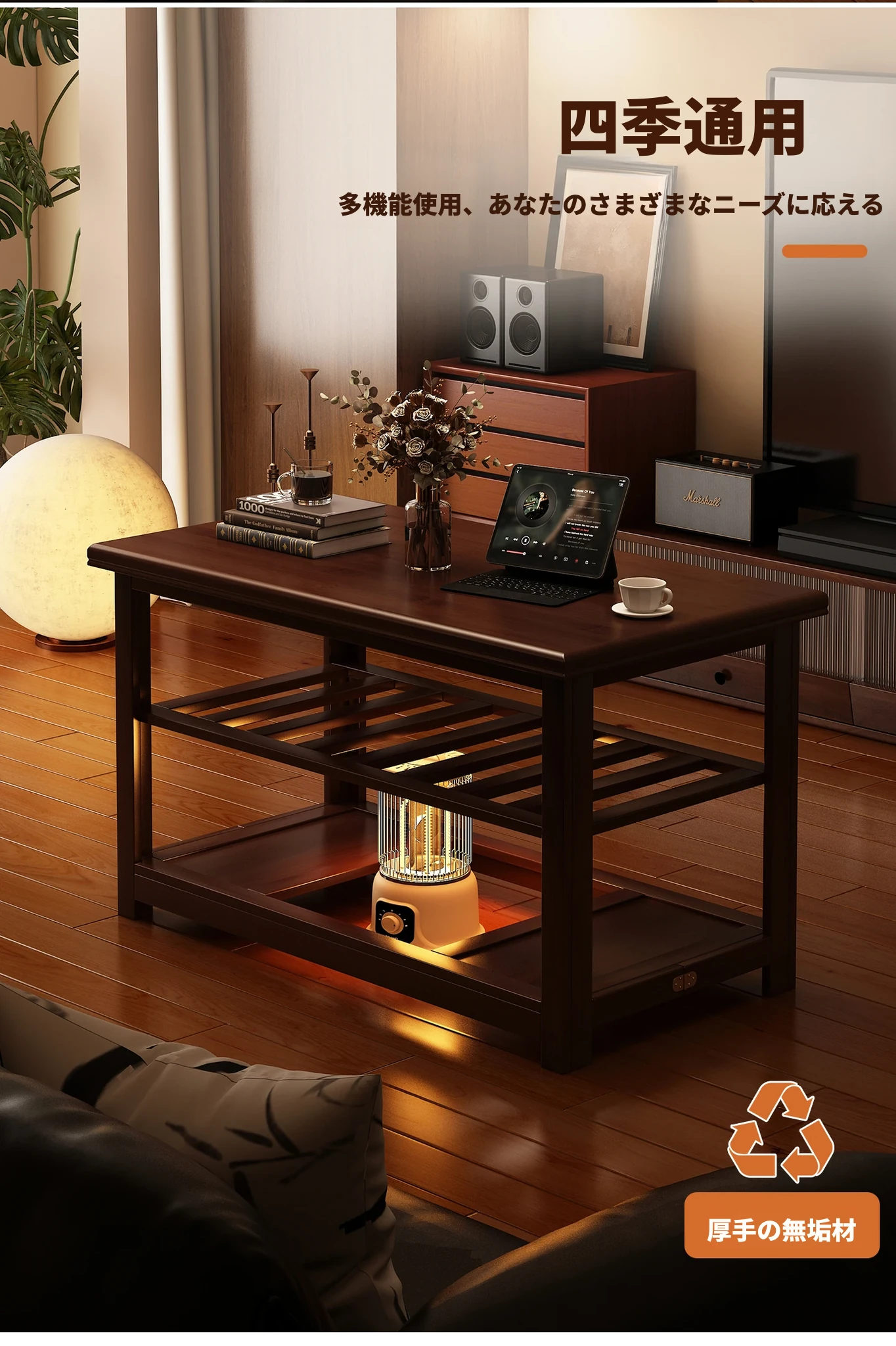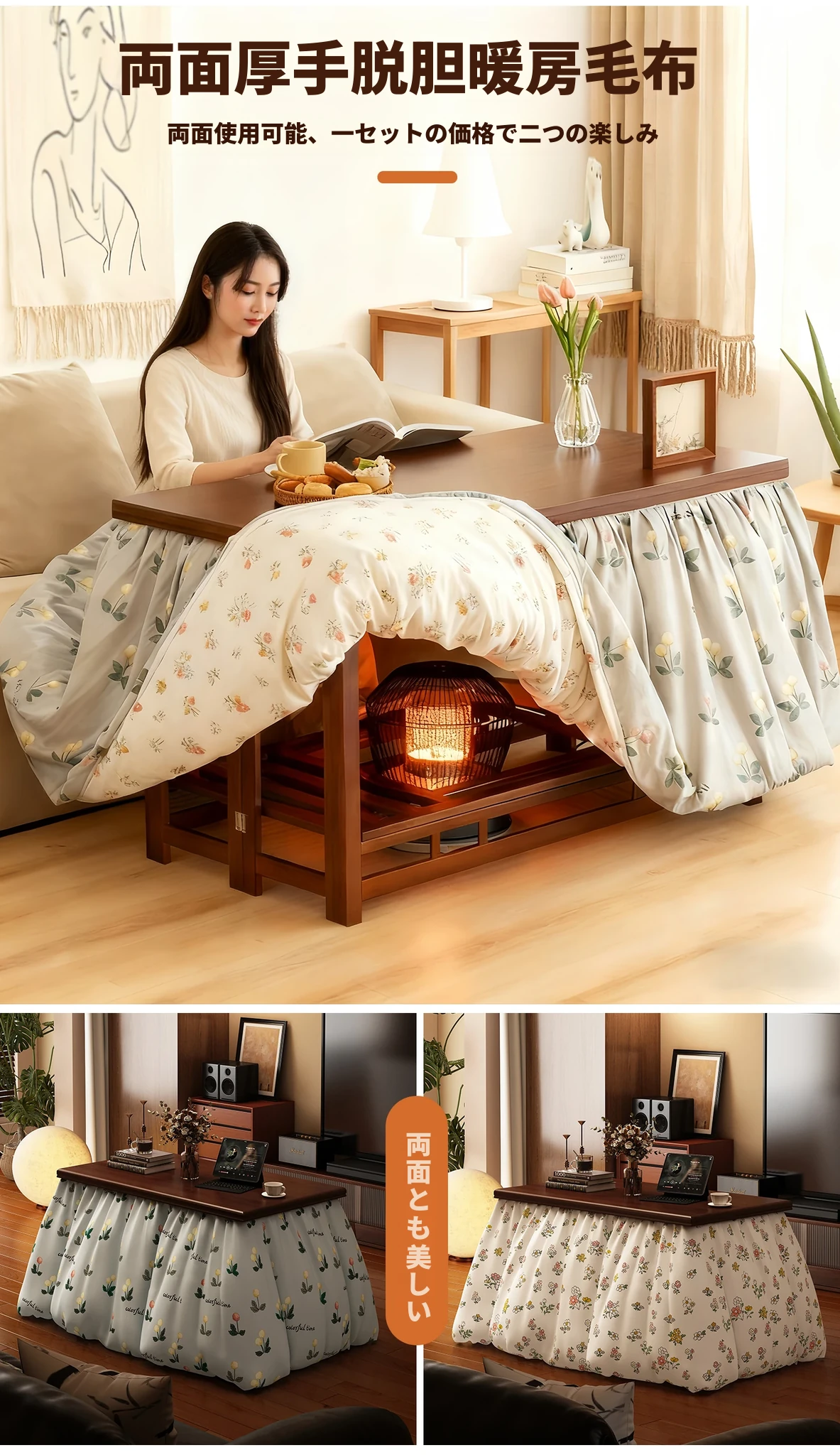 折りたたみ式暖房テーブル|実木製の長方形デザイン|冬の宿題やリラックスタイムに最適|2025年新作の暖かいティーテーブル