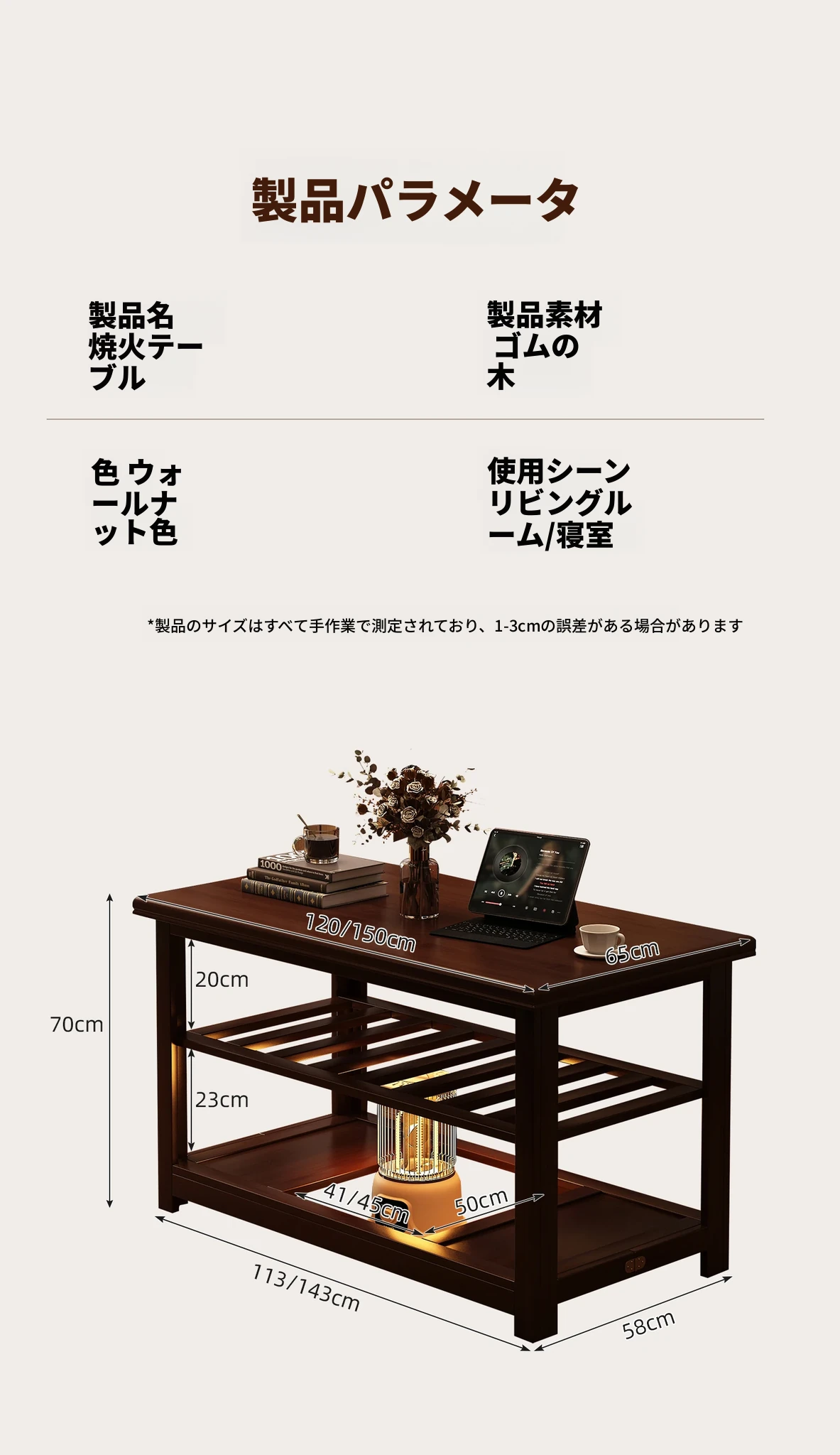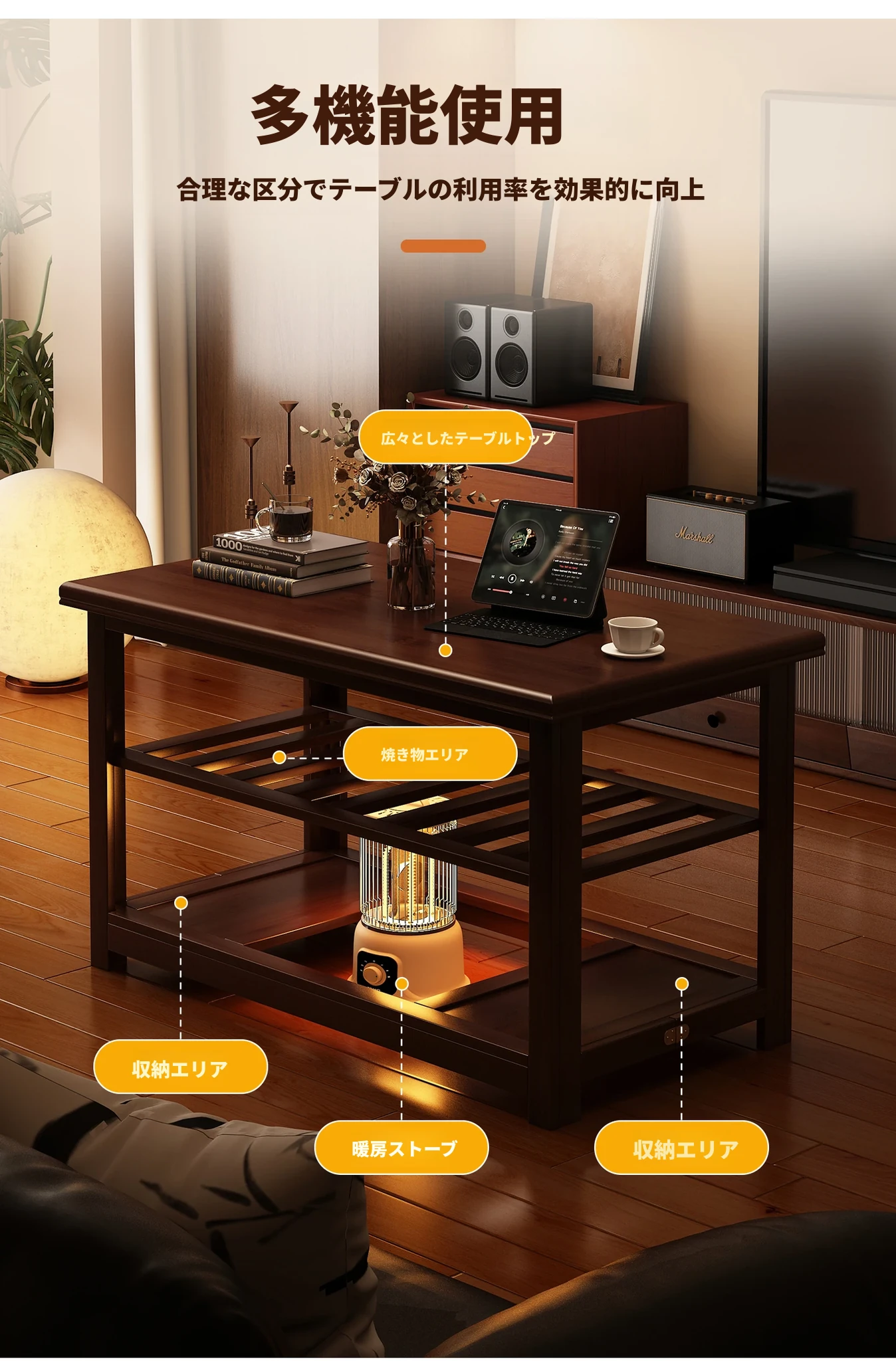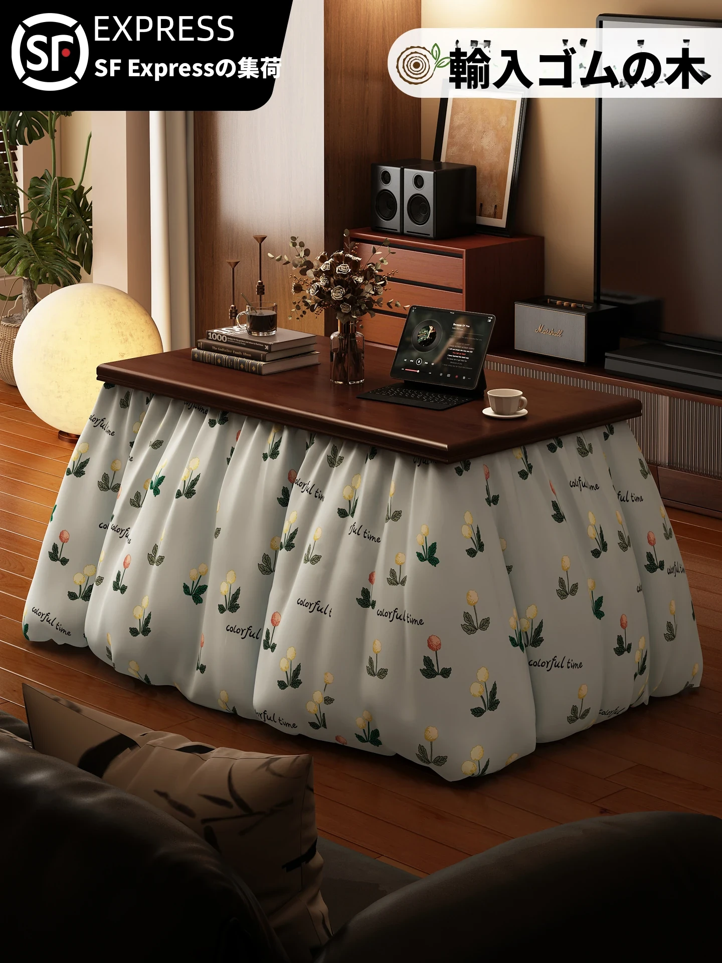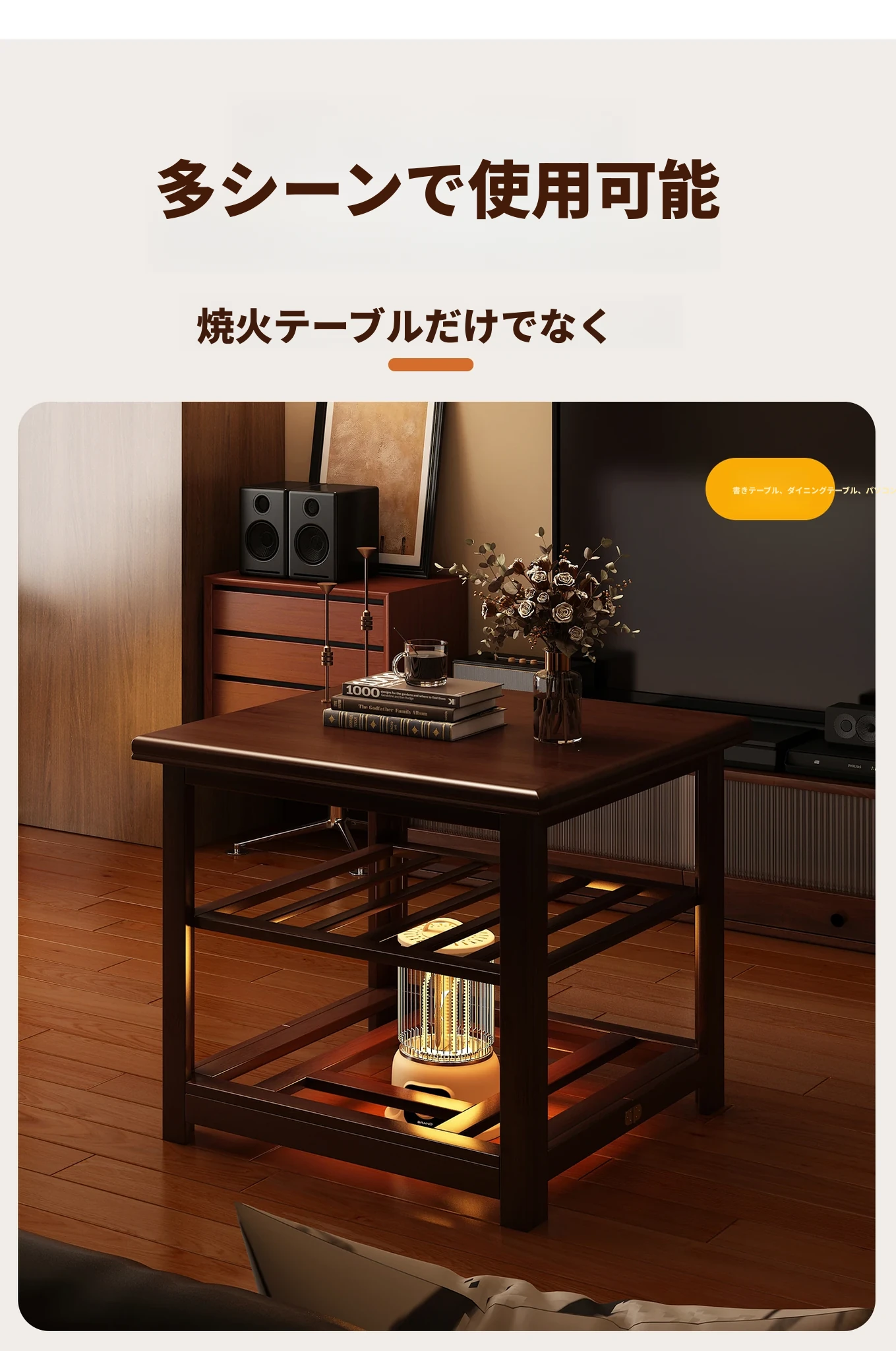 折りたたみ式暖房テーブル|実木製の長方形デザイン|冬の宿題やリラックスタイムに最適|2025年新作の暖かいティーテーブル