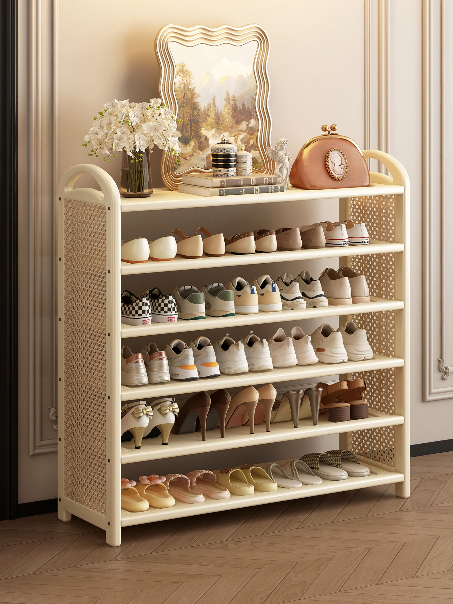 Multi-Layer French Style Shoe Rack for Home – Creamy Indoor Entryway Shoe Cabinet, Perfect for Renters! 2025 New Arrival for Stylish Shoe Storage Solutions.