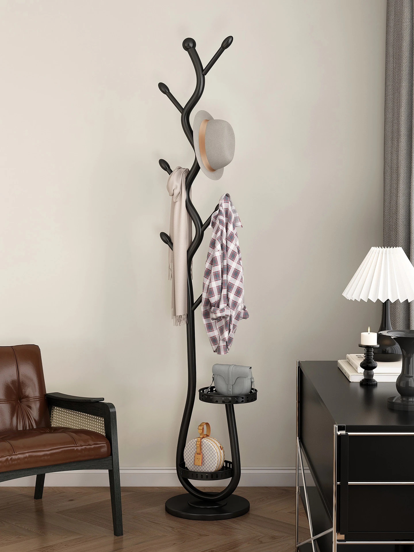 Space-Saving Free-Standing Coat Rack 2025 New Model - Stylish Home Clothes Organizer and Entryway Bag Holder