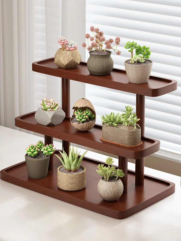 Multi-Tiered Wooden Plant Stand for Office Desktop - Ideal for Succulent Display, Window Sill Décor, and Small Plant Organization - Perfect Space-Saving Solution!