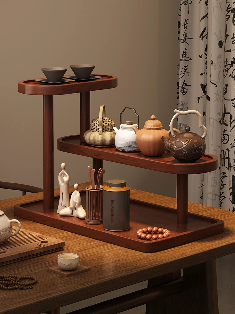 Compact Solid Wood Display Rack for Tea and Collectibles - Perfect for Teapots, Teacups, and Decorative Items, Ideal for Home or Office Use.