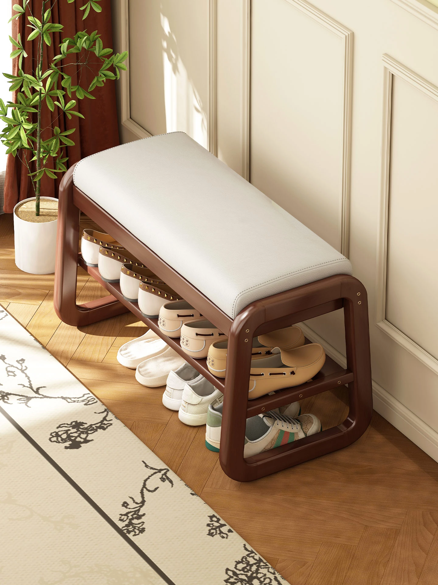 Solid Wood Entryway Shoe Bench - Stylish and Functional Long Seat for Home Use, Perfect for Changing Shoes at the Door, Combines Shoe Storage and Seating, Ideal for Living Room or Entryway