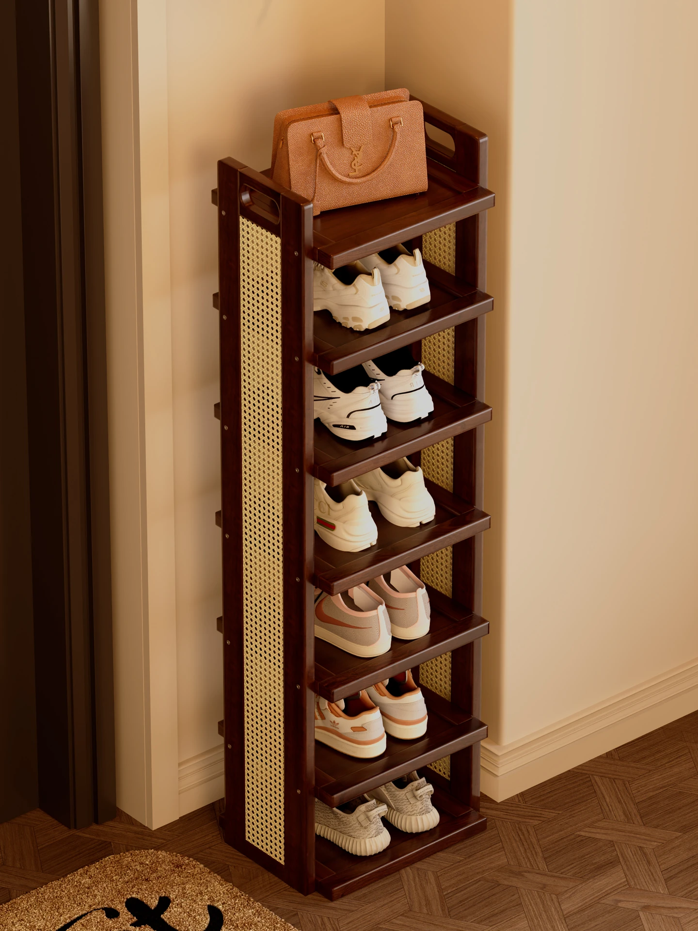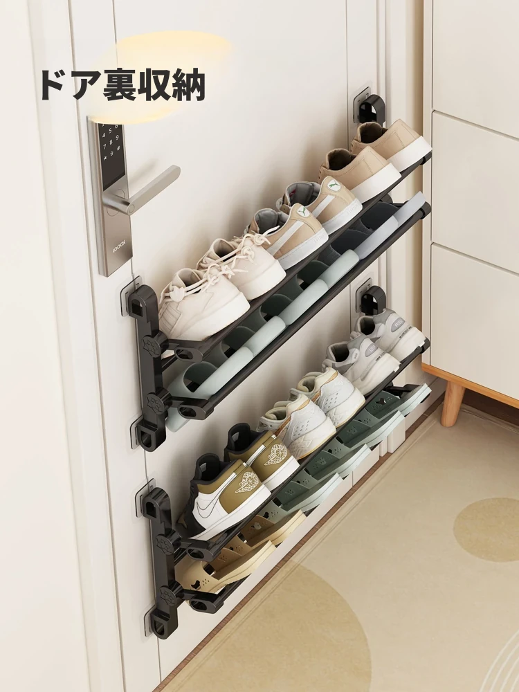 折りたたみシューラック!狭い玄関やドアの後ろにピッタリの収納アイテム。壁掛け式で、宿舎や小スペースでもスッキリ整理。靴をスムーズに収納できる便利な神器です!