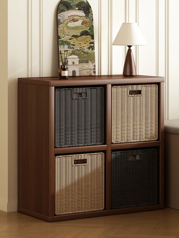 壁に寄せて置ける収納力抜群のリビング用サイドボード!2025年新作のヴィンテージ風ティーバー、コンパクトな小型住宅にも最適な多機能収納キャビネット。おしゃれで実用的な空間を演出します!