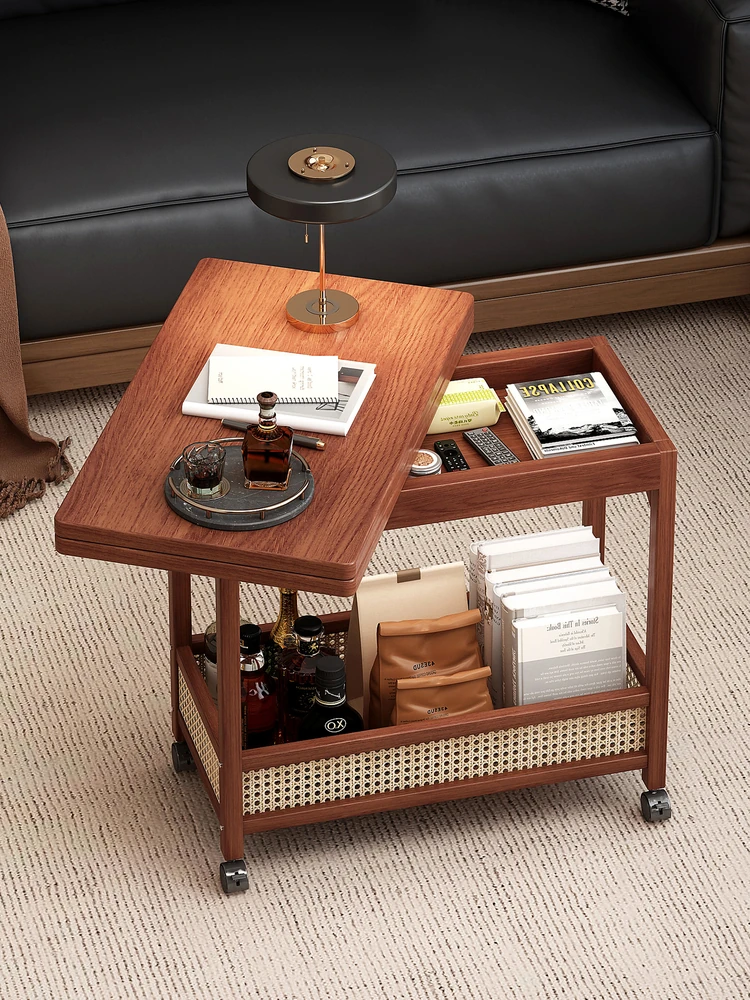 移動可能なソファサイドテーブル、家庭向けリビングルームの軽やかさと高級感を兼ね備えた、天然木製の折りたたみ式ティーテーブルとサイドキャビネット。スタイリッシュなデザインで空間を引き立てます!