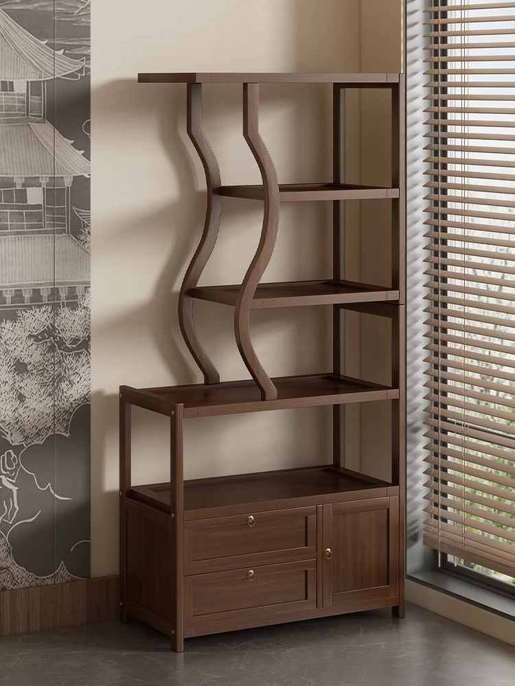 新中式実木茶棚 - リビングにぴったりの茶具ディスプレイラック!おしゃれで機能的な収納スペース、文玩も美しく展示できます。あなたの家を格上げする、洗練されたデザインが魅力!