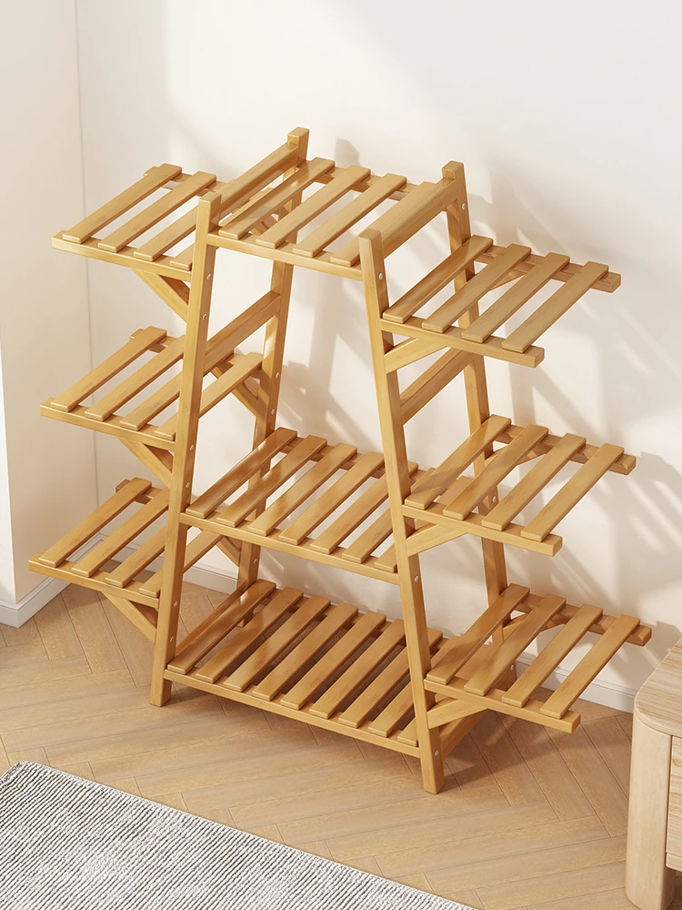 おしゃれなリビングにぴったり!角に置ける多肉植物や観葉植物のためのフロアスタンド収納ラック。バルコニーにも最適な花鉢ラックで、インテリアを引き立てるアイテムです。