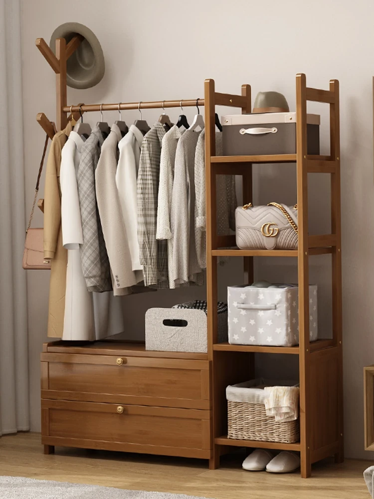 シンプルでモダンな木製コートラック - 室内のスペースを有効活用!寝室やリビングに最適な衣類収納、スタイリッシュなデザインでお部屋をすっきり整理。