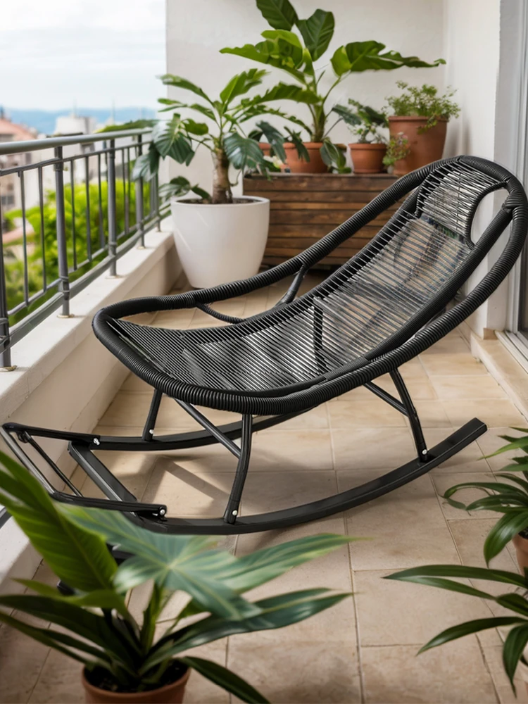 リラックスできる藤編みのロッキングチェア|大人向けのバルコニー用|家庭でくつろげる|お年寄りの昼寝や客間にも最適なメインテナンスフリーのラウンジチェア