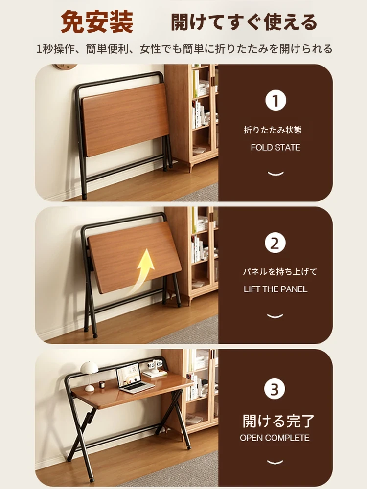 折りたたみ式の書斎デスク - 家庭用パソコンデスク、ベッドサイドテーブル!シンプルな学習・執筆デスク、移動可能なオフィス作業台で、スペースを有効活用!快適な作業環境を手に入れましょう!