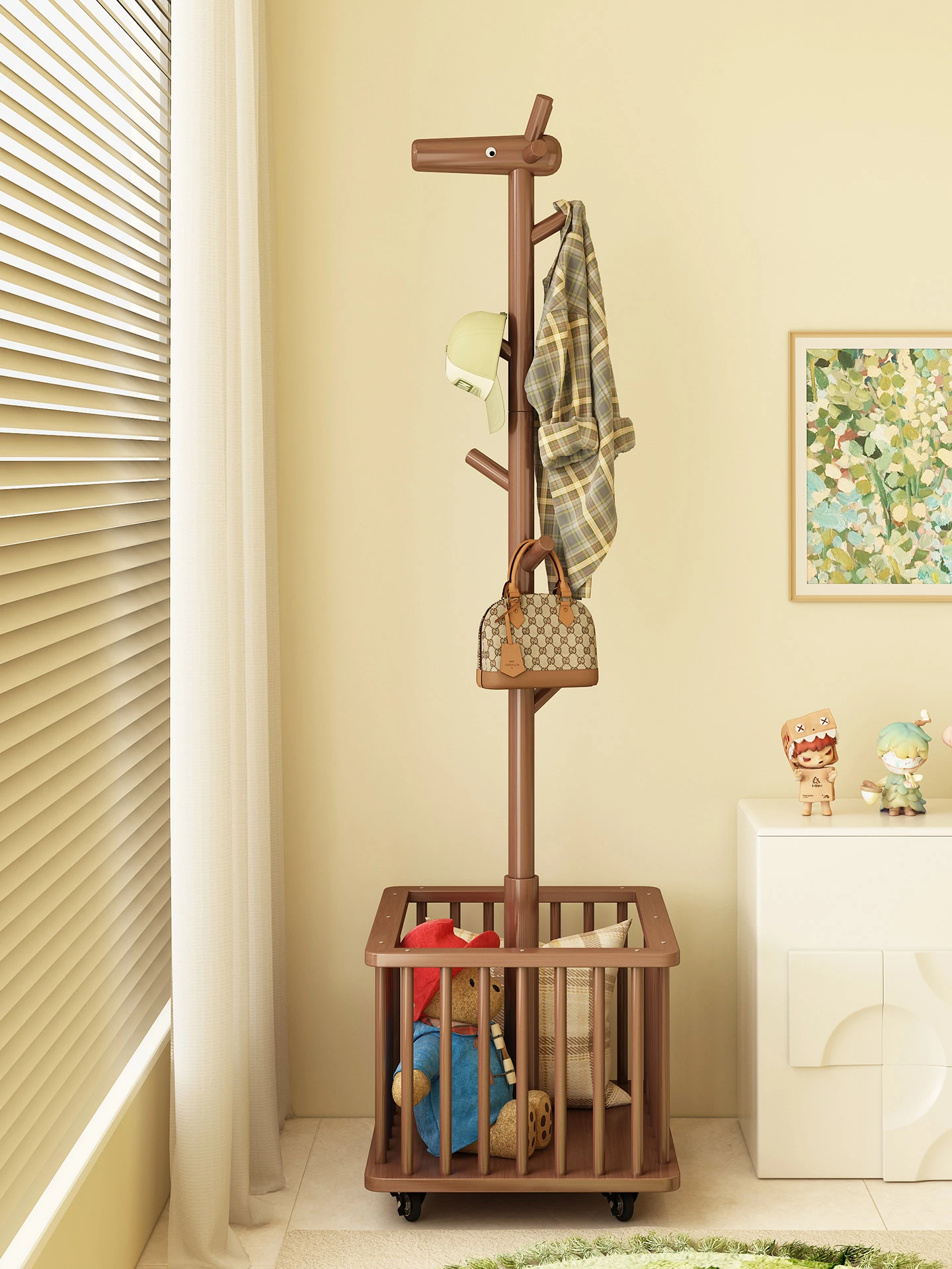 天然木製の小鹿型コートハンガー - 寝室にぴったりの移動式スタンド、バッグや衣服の収納もできる!洗濯物入れとしても活躍するおしゃれなアイテム。