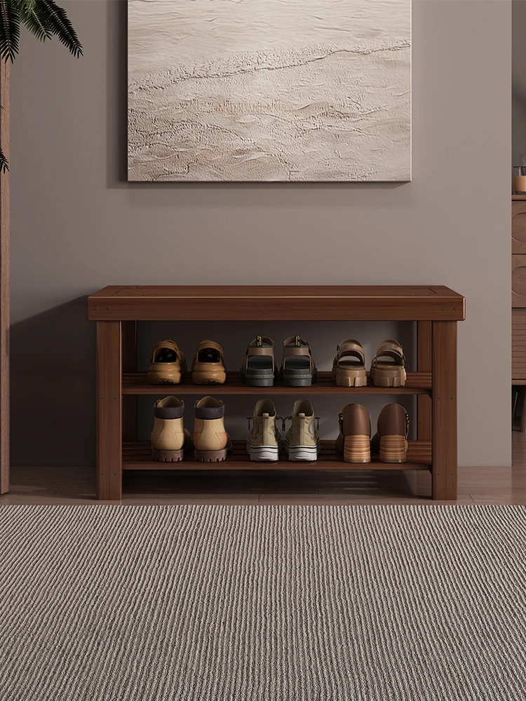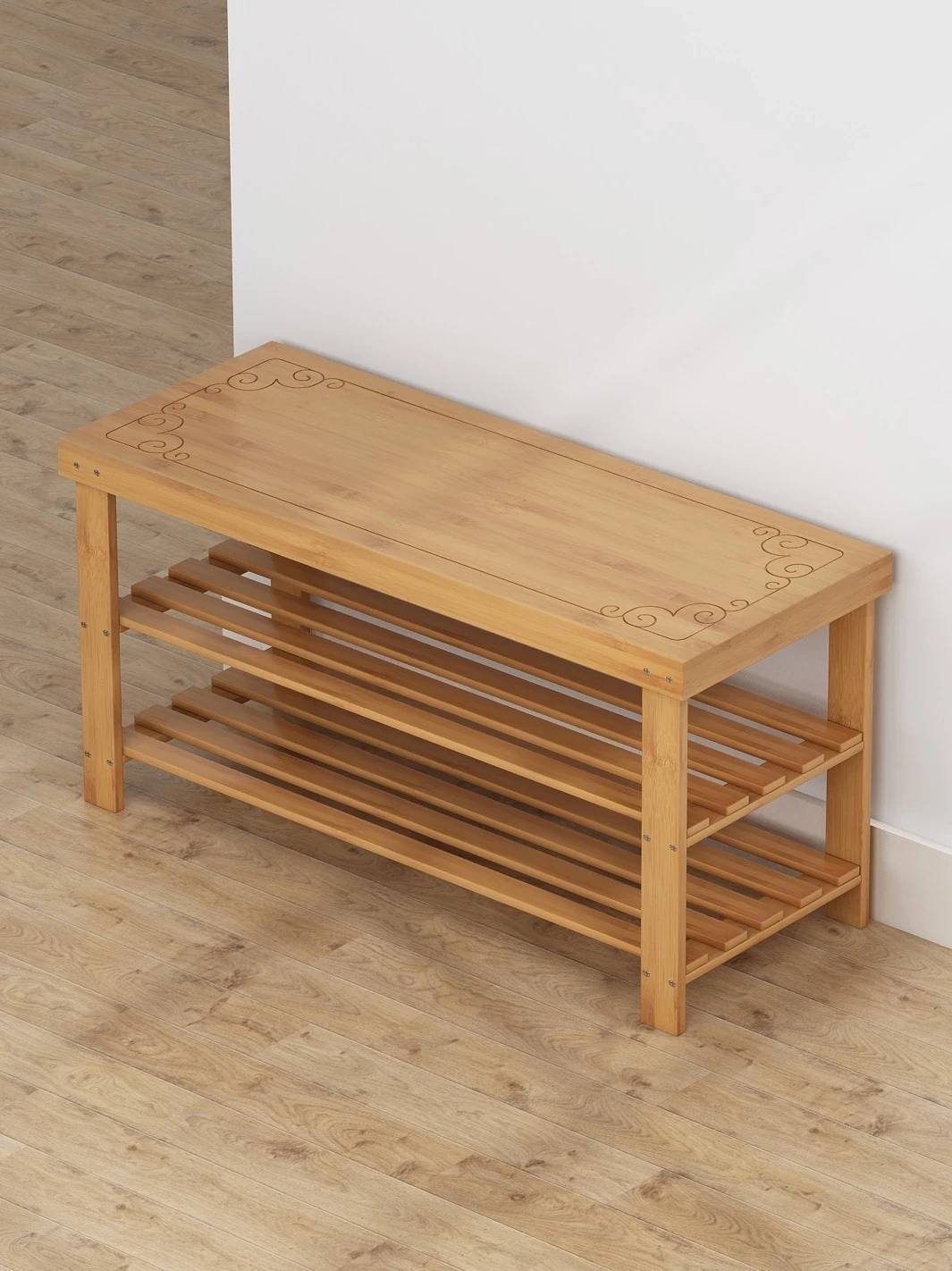 竹製シューラック・シューズベンチ - 玄関用木製シューズキャビネット、座れる靴替えベンチ!天然素材でシンプル、家族みんなにぴったりの実用的デザイン。おしゃれな玄関を演出し、靴の整理も簡単に!