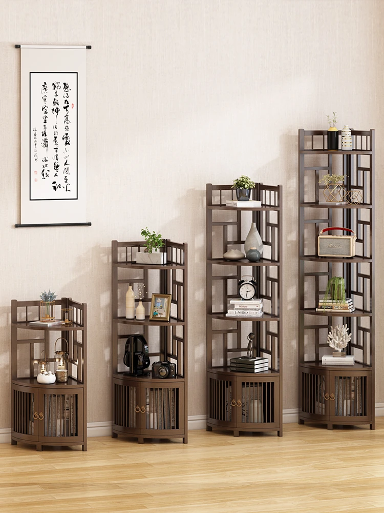 新中式デザインの三角型博古架 - リビングルームや茶室に最適な収納キャビネット。美しい茶葉ディスプレイや小物収納にぴったり!優雅な空間を演出します。