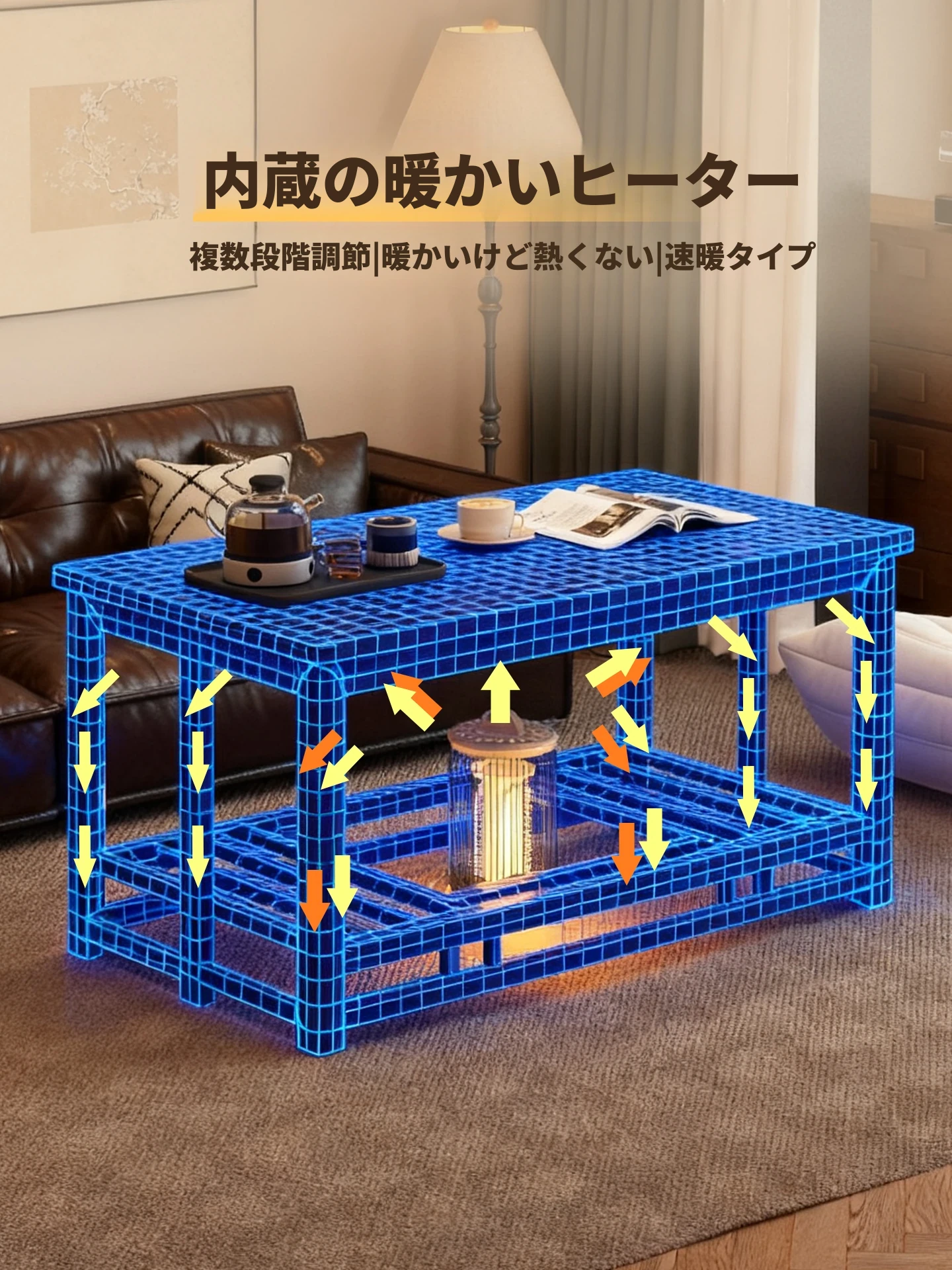 折りたたみ式の長方形ストーブテーブル - 冬の暖房に最適!天然木製で、カードゲームやお茶のひとときにもぴったり。家族や友人と温かい時間を楽しむための理想的なアイテムです。